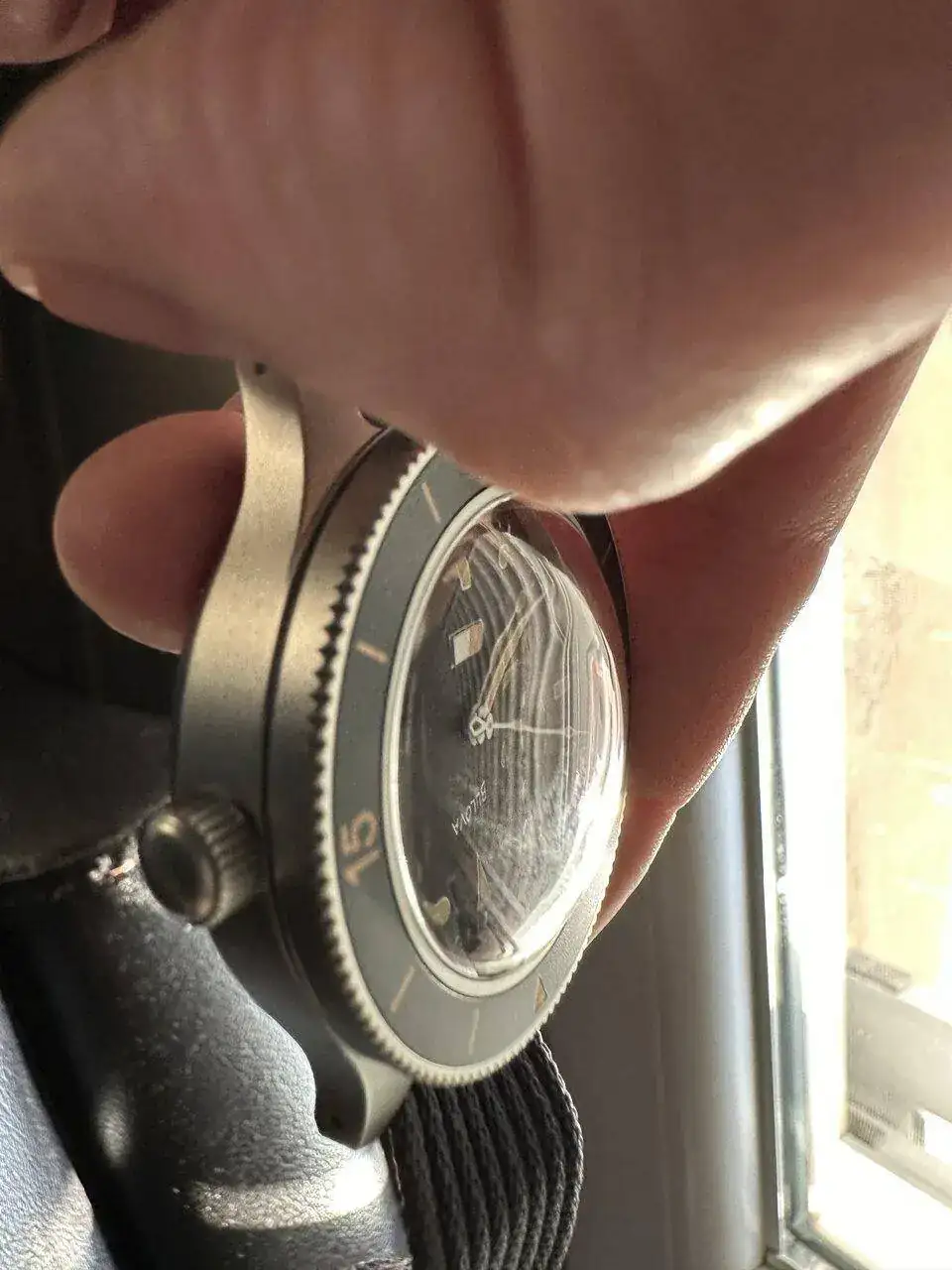 Qué jodió es de fotografíar, me encanta este cristal de zafiro abombado, su ajuste del bisel que se mueve presionándolo, su indicador de humedad, etc, etc. En fin, soy fácilmente enamoradizo. 🫣