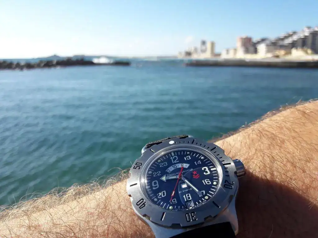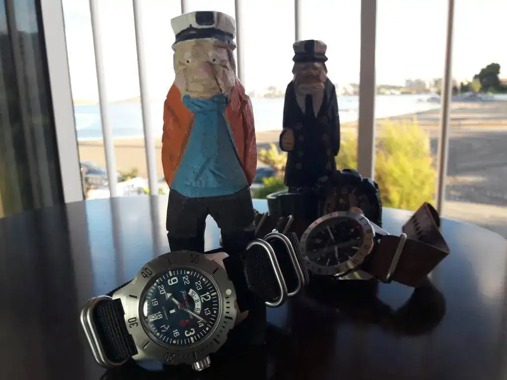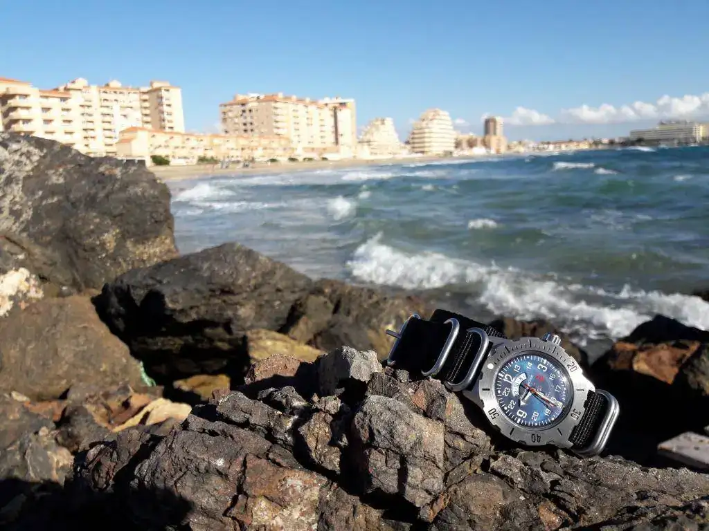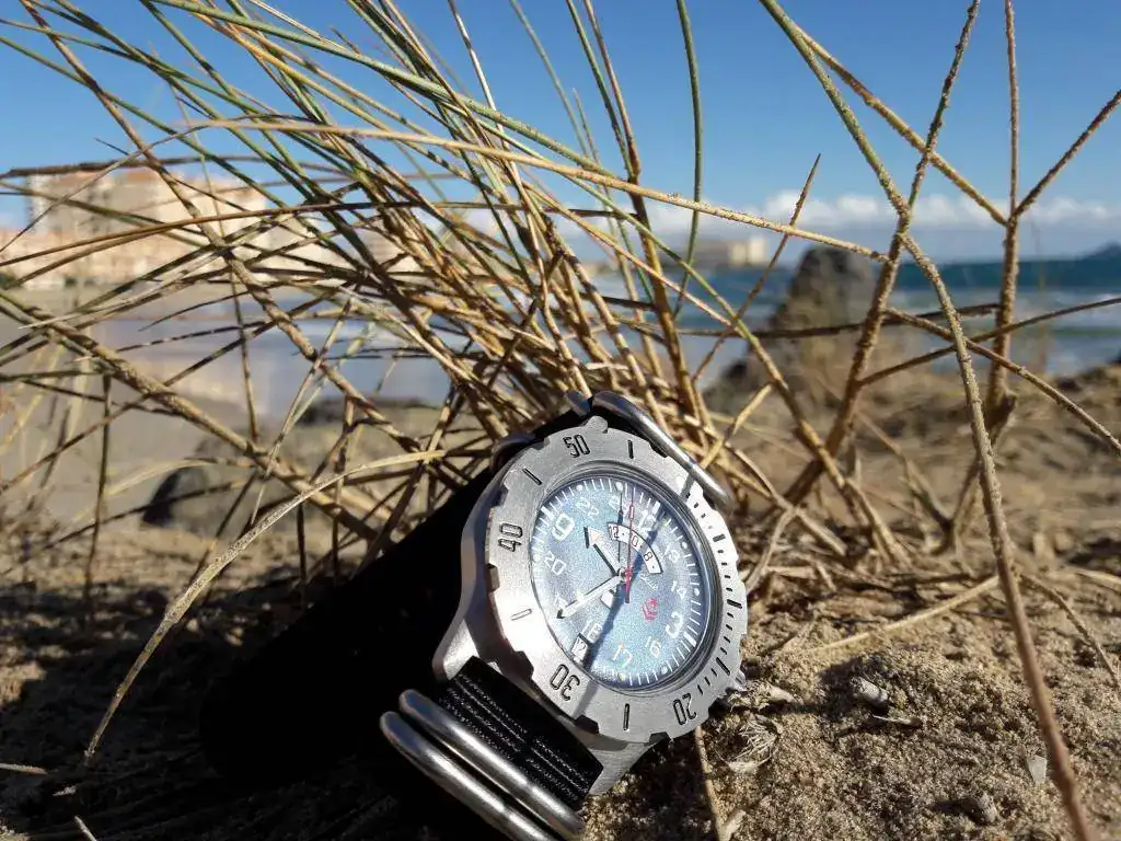 Otra vez en la playita... la dotación, los dos recien llegados y el G-Shock como veterano...
