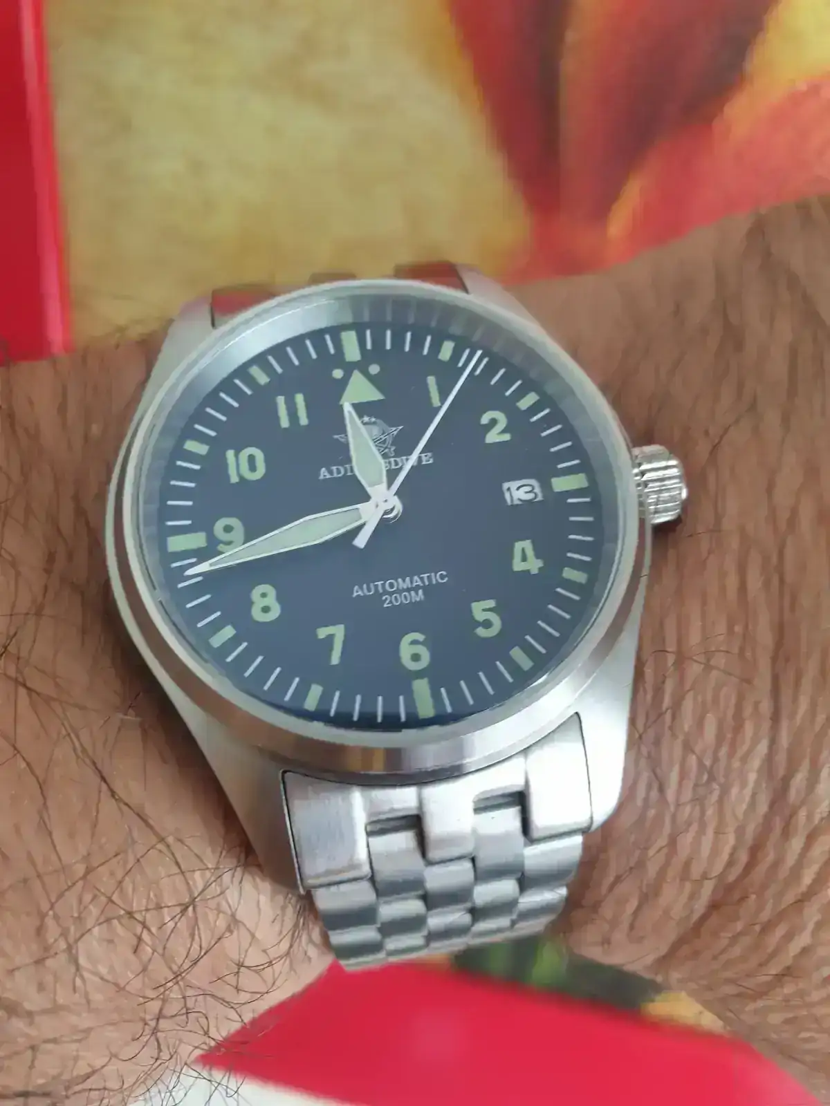 Cuero, acero, textil, nato... etc etcBuen sábado a tod@s. Hoy con mi pilot Addiesdive, esta vez vestido con su brazalete que es muy cómodo y también tiene su puntillo, me gusta😀