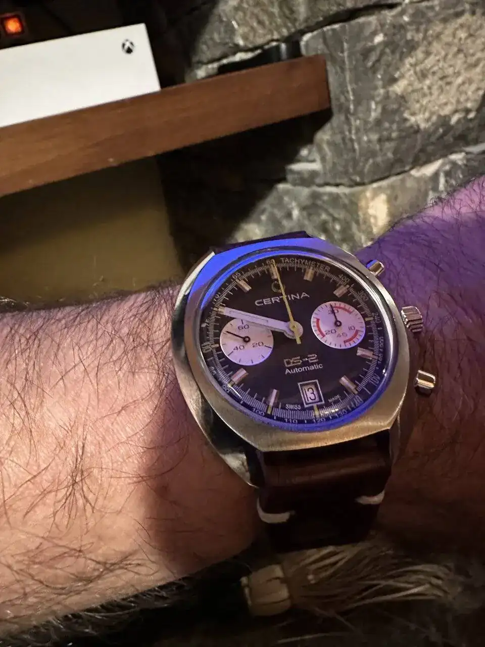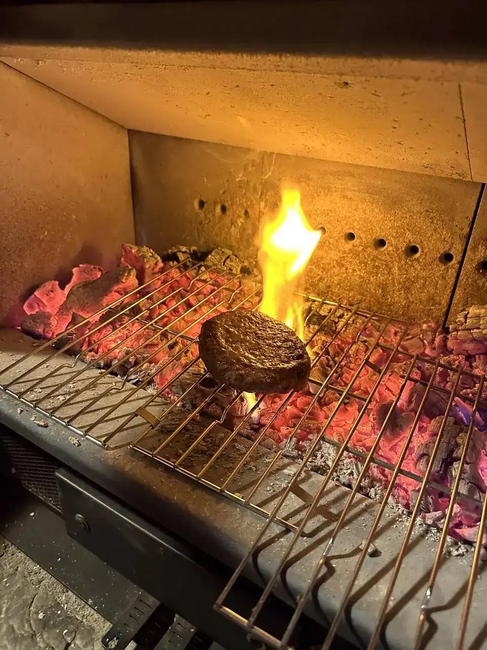 Hoy cena a la parrilla , una angus de proximidad a la parrilla en su punto justo , crujiente por fuera , cruda por dentro , con un poco de sal gorda por encima , un chorro de aceite de oliva virgen suave , pan rústico de burger , queso fundido , tomate 🍅 y lechuga … como acompañante un certina con una correa vintage al igual que la forma de cocinar , regado ahora con un buen cubata porque hoy es sabado y en breve una sesion de buena musica…