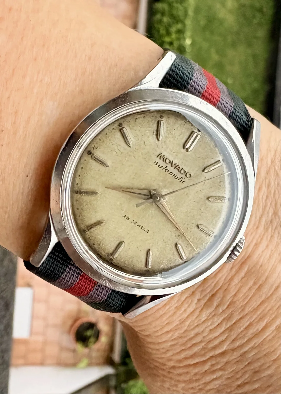 Otra belleza sin modas pasajeras.¡Buenos días! Sigo con Movado y llego a la década de 1960: líneas suaves y clásicas (al menos hasta finales de la década que empiezan los diseños audaces). El de hoy me encanta por fuera: esa sencillez con detalles de la caja y los índices bullet con doblete a las doce no me cansa, pero os lo enseño también por dentro, porque Movado también cuidaba un elemento que no me suele gustar nada en los calibres automáticos: la masa oscilante