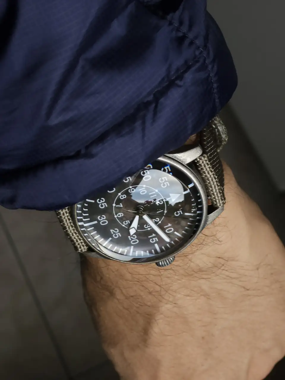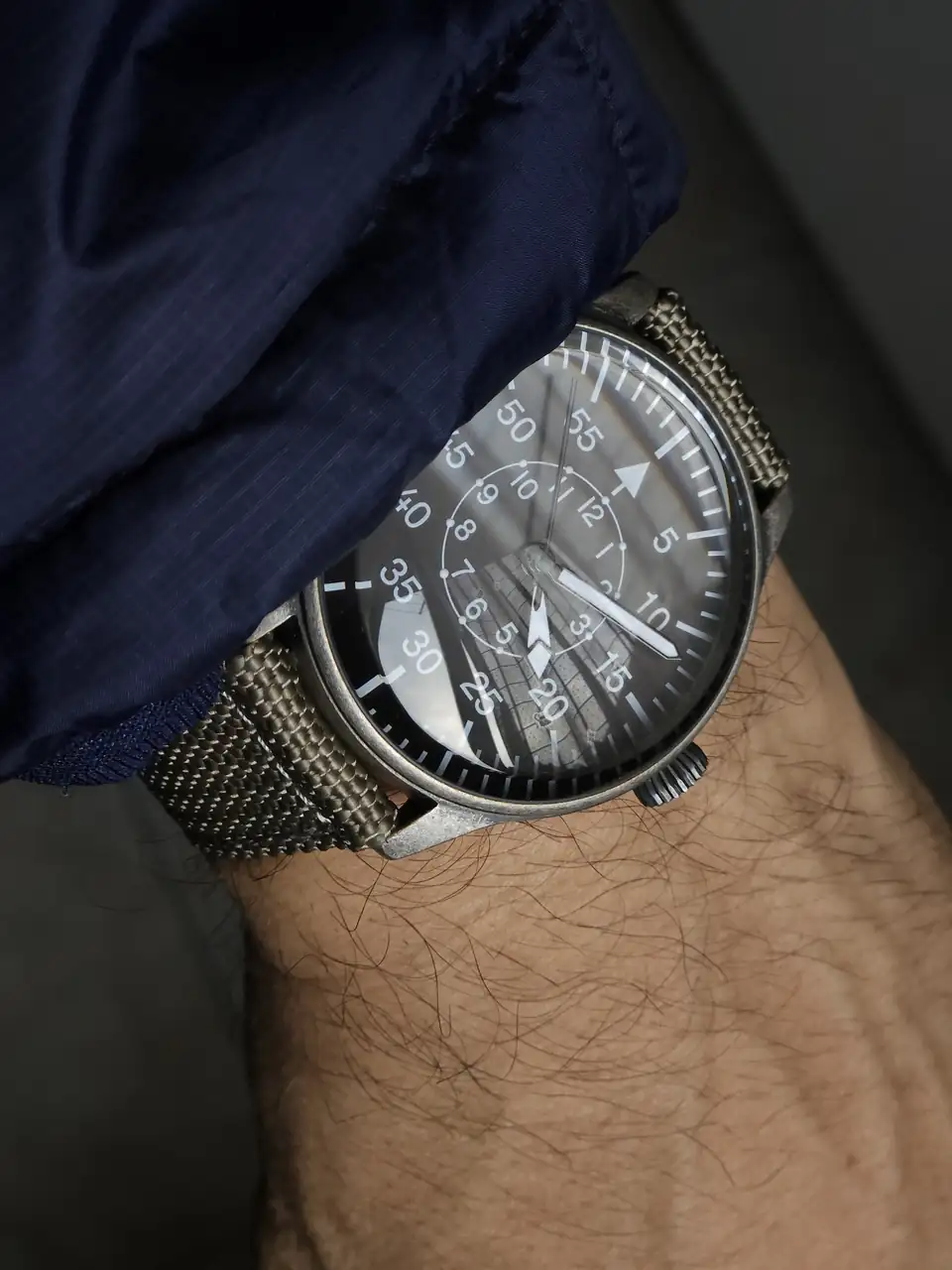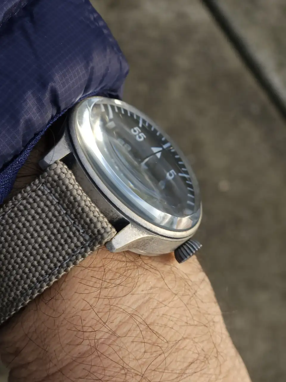 Es muy cutrillo. Quizá sea la versión más cutre de un B-uhr que puedas encontrar, pero lo cierto es que entre el acabado envejecido de la caja y sobre todo el vidrio tan locamente abombado que tiene, le veo un aire vintage que me encanta.