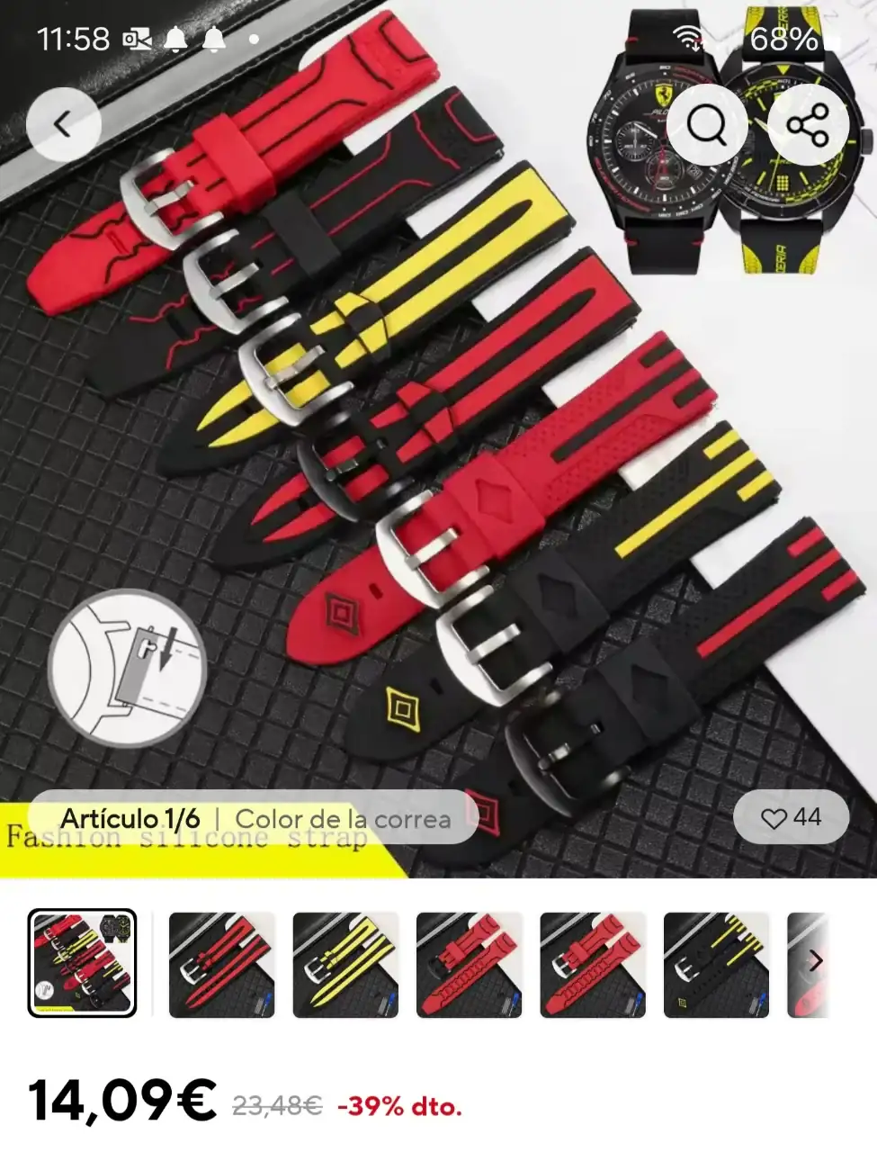 He mirado y las hay tambien que cobinan los colores. Y otras combinaciones ademas de las de la foto.Pues es de Aliexpress. La única que he podido encontrar de 21mm y burdeos (que no roja). Te dejo el link y una foto donde se ven mejor los colores.