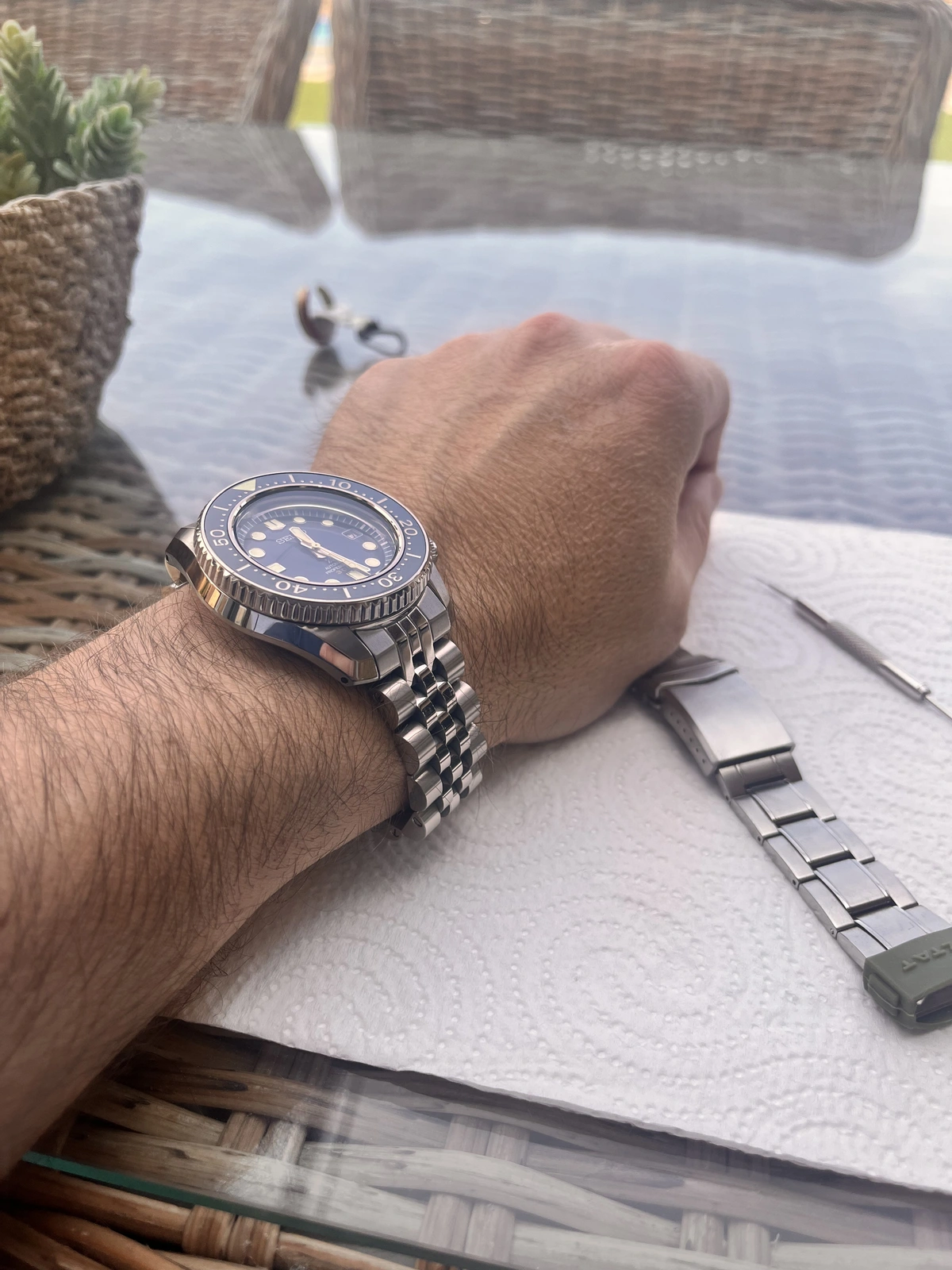 Es un azul muy difícil de describir la verdad. Te aseguro que es precioso, espectacular. El tono de azul cambia mucho con la luz, incluso se llega a ver gris muy oscuro casi negro en ocasiones. Mi experiencia con el empieza a estabilizarse. Lo compré porque me encantó y al poco empecé con lo de coleccionar y lo fui olvidando. Sin embargo ahora mismo, te puedo decir que me quedo mucho más tiempo mirando el dial, los índices, pulidos, agujas, fechador, bisel… que con ningún otro de los que tengo. Es realmente muy muy satisfactorio tenerlo encima. Creo que no te arrepentirás.Tengo un MM como este a tiro, además con la jubile de Strapcode, tal cual el tuyo, pero me preocupa el tono del azul, es un azul eléctrico o un azul mate como el del sumo?, digo azul eléctrico porque no se como llamarlo 😂