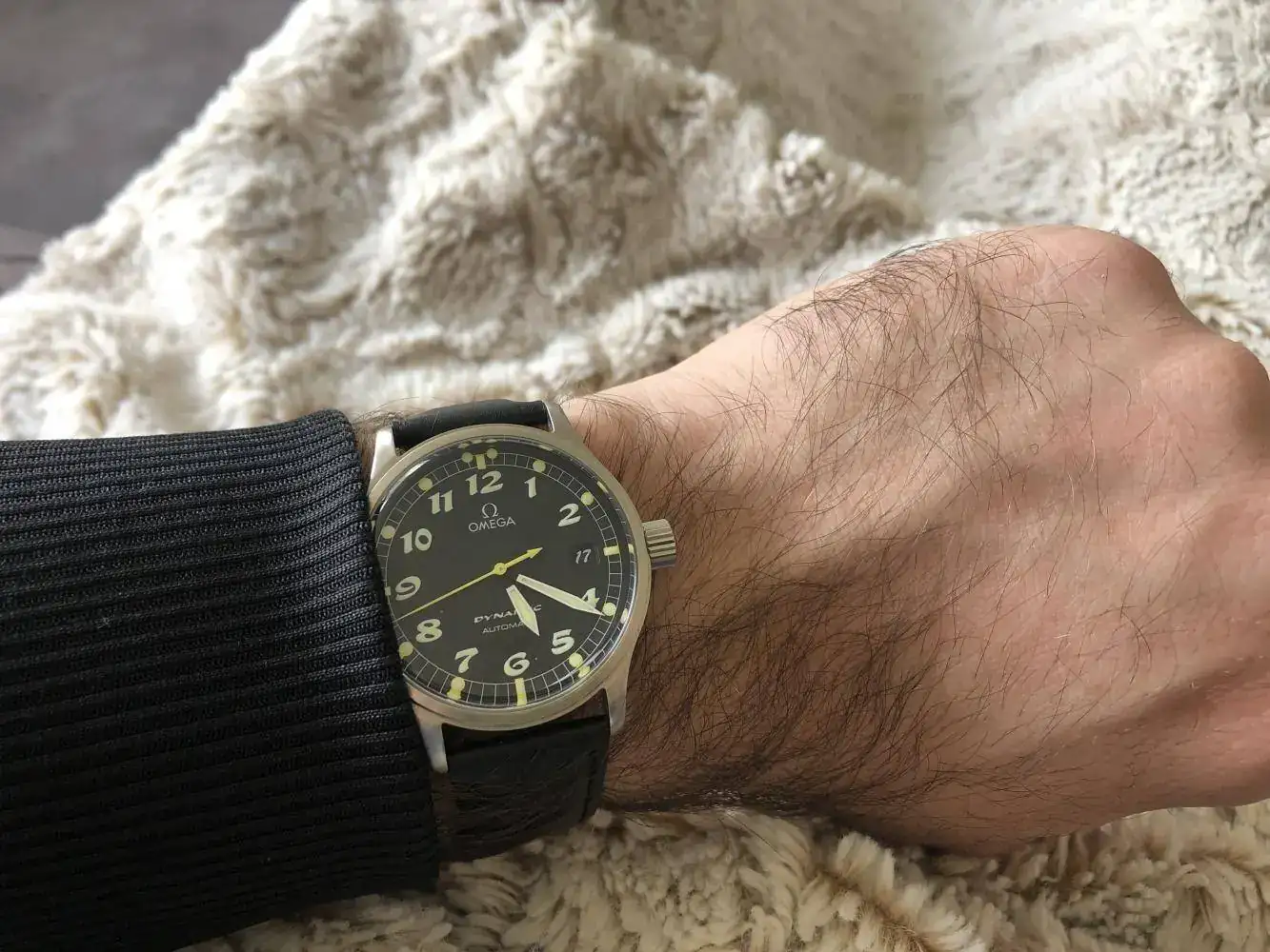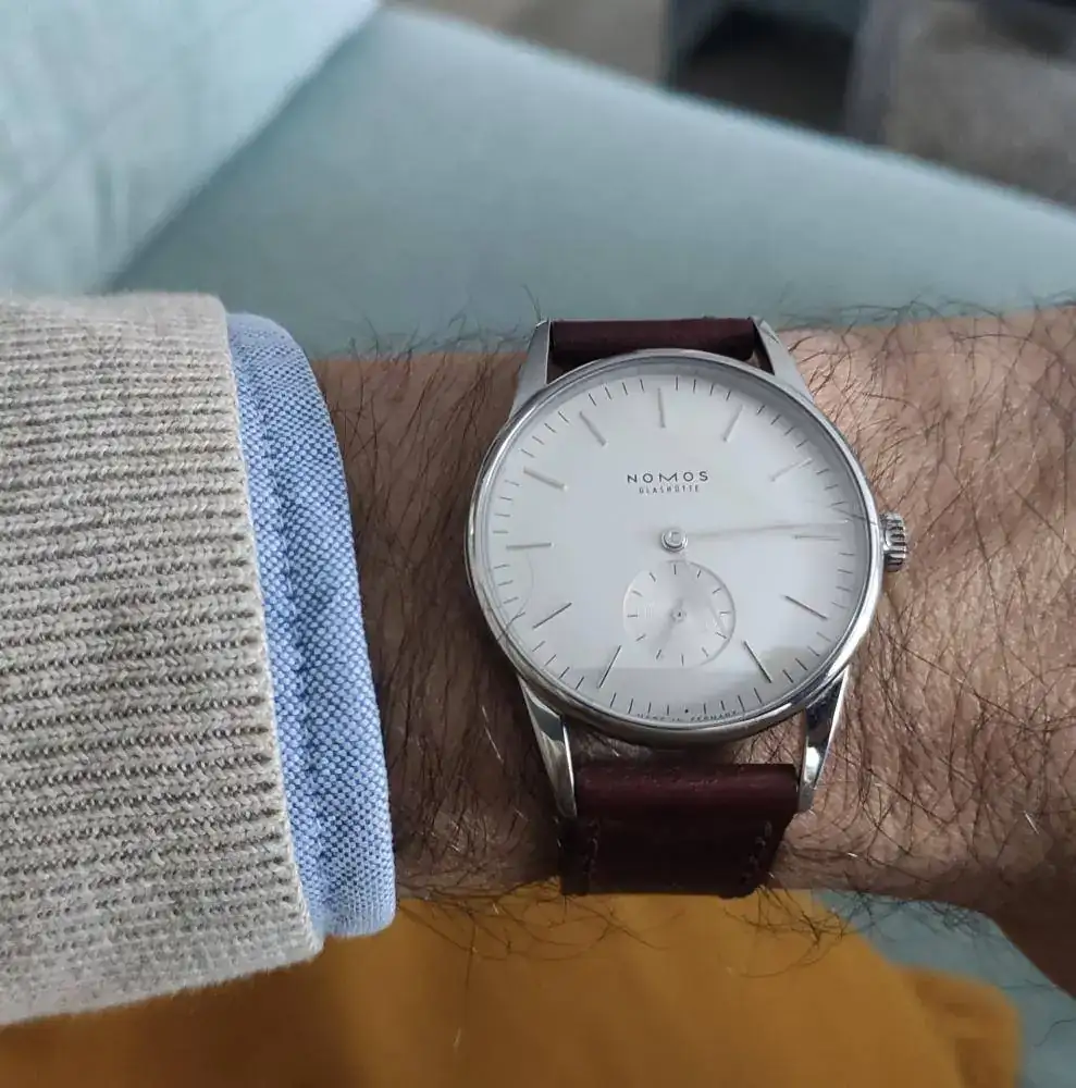 muchas gracias compa!! la verdad que a pesar de su tamaño de 36,5mm, no se hace pequeño y es muy curioso, con esa segundera amarilla y ese negro mate del dial.