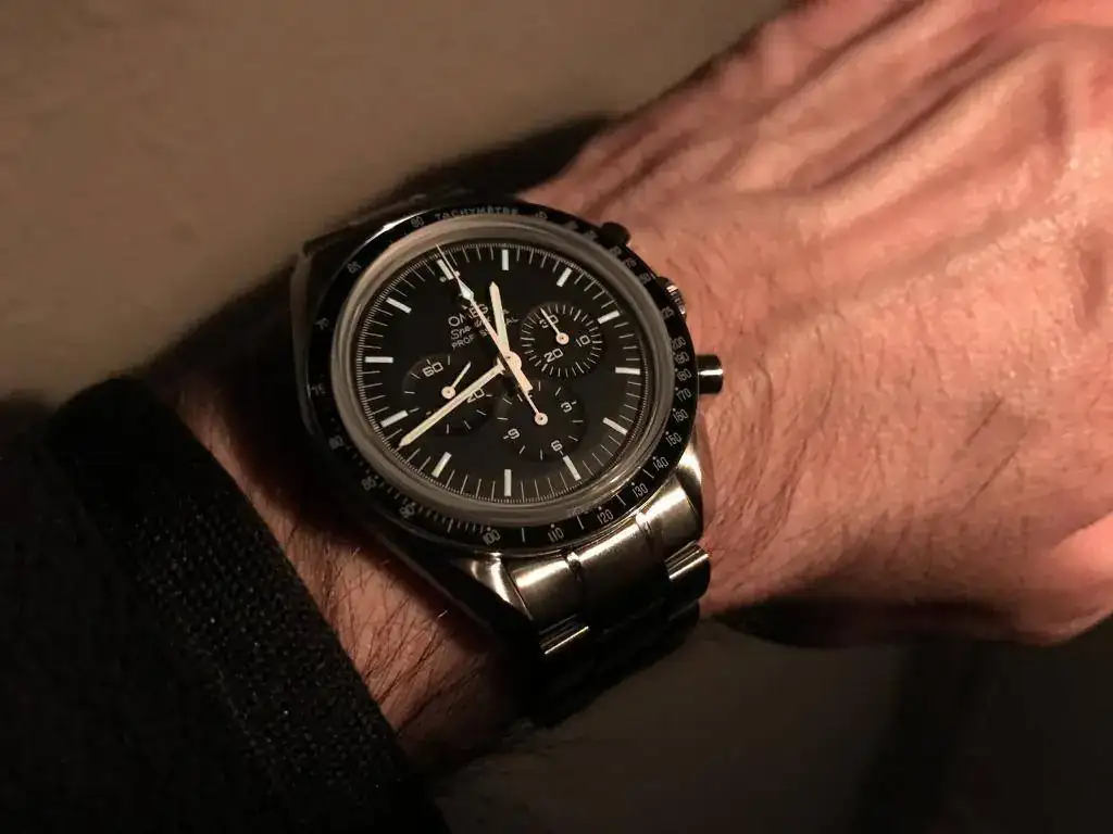 Las agujas del PAM 422 refulgen al verlo.