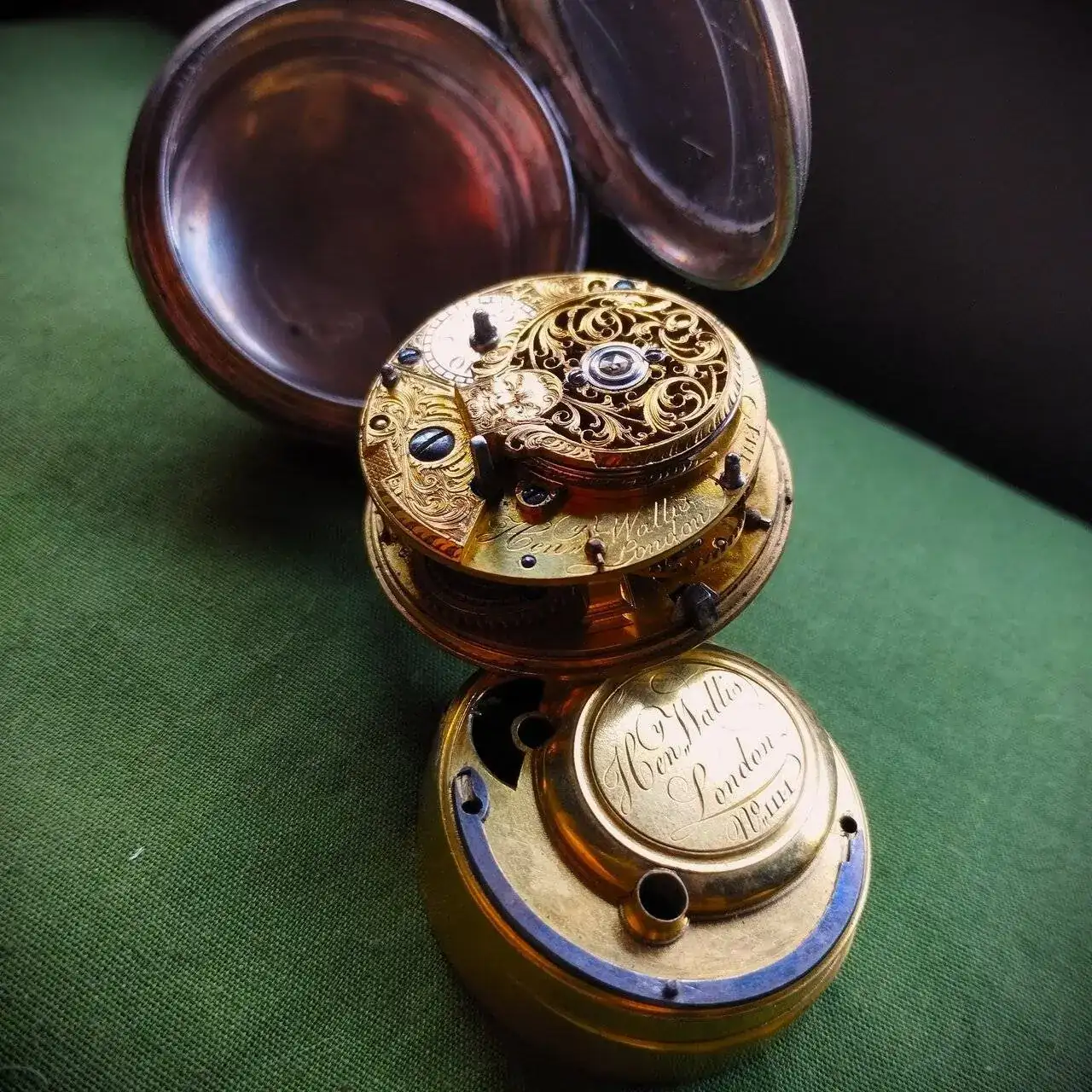 Precioso estos "cepolla" con los calibres gordos.Hoy le toca moverse un poco a uno de los abueletes de la caja. H Wallis, London circa 1750