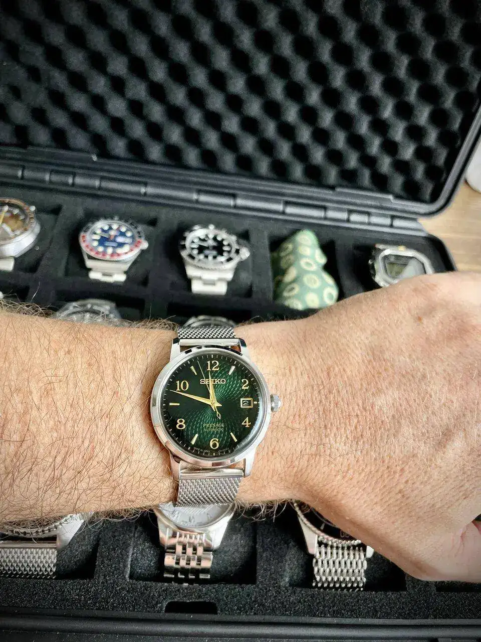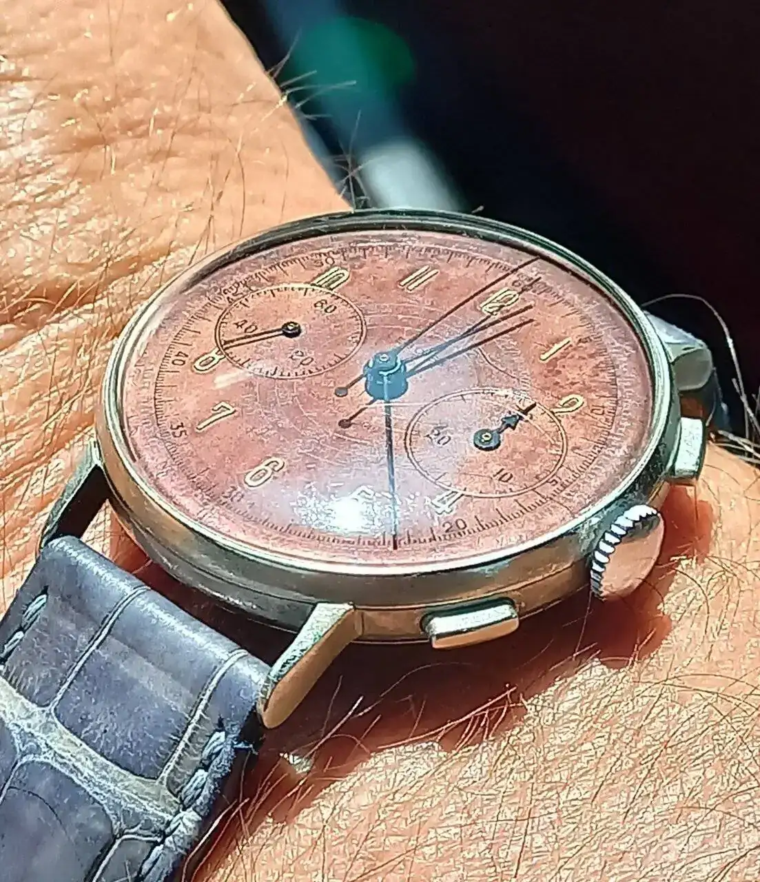 Difícil ver la belleza de este reloj en fotografía. Aparte de los intangibles, este oro rosa y esta milanesa. Un maduro muy resultón.