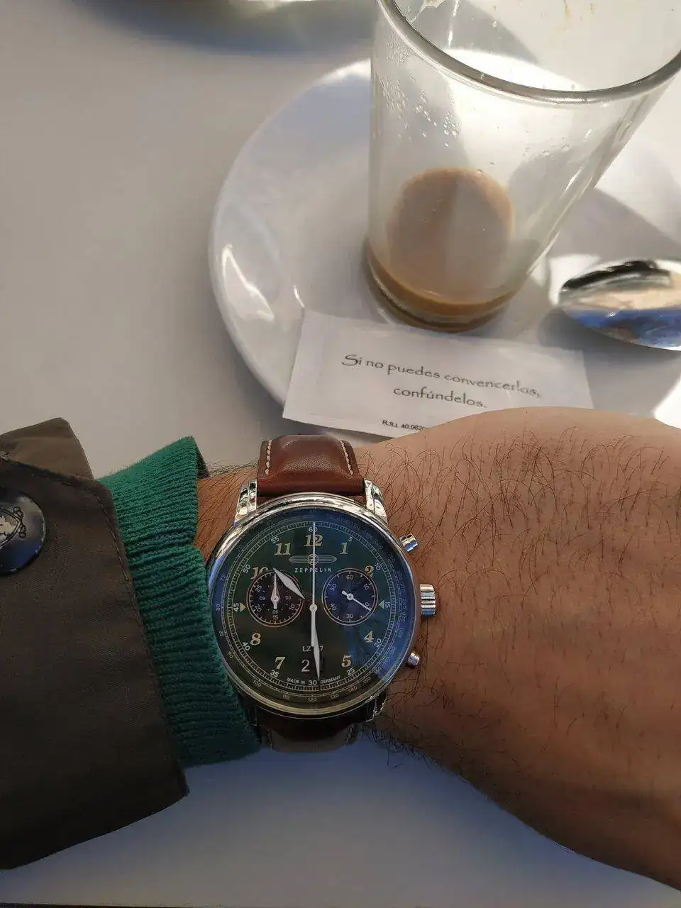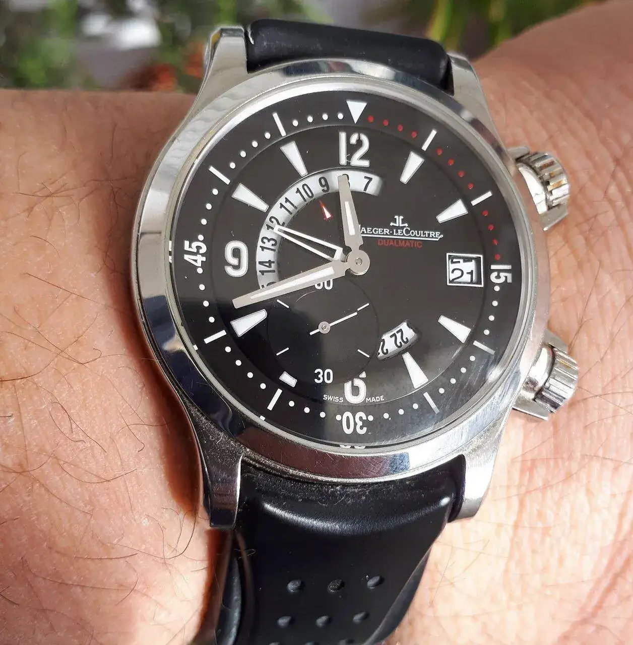 A ese le perdonaba mi toc por la simetría...Buenos días y espero que disfrutéis de un buen sábado. Hoy un JLC Dualmatic... y sí, me he dado cuenta gracias a la foto que llevo la hora p.m., por eso la fecha está a punto de cambiarse. La presbicia que es muy mala.