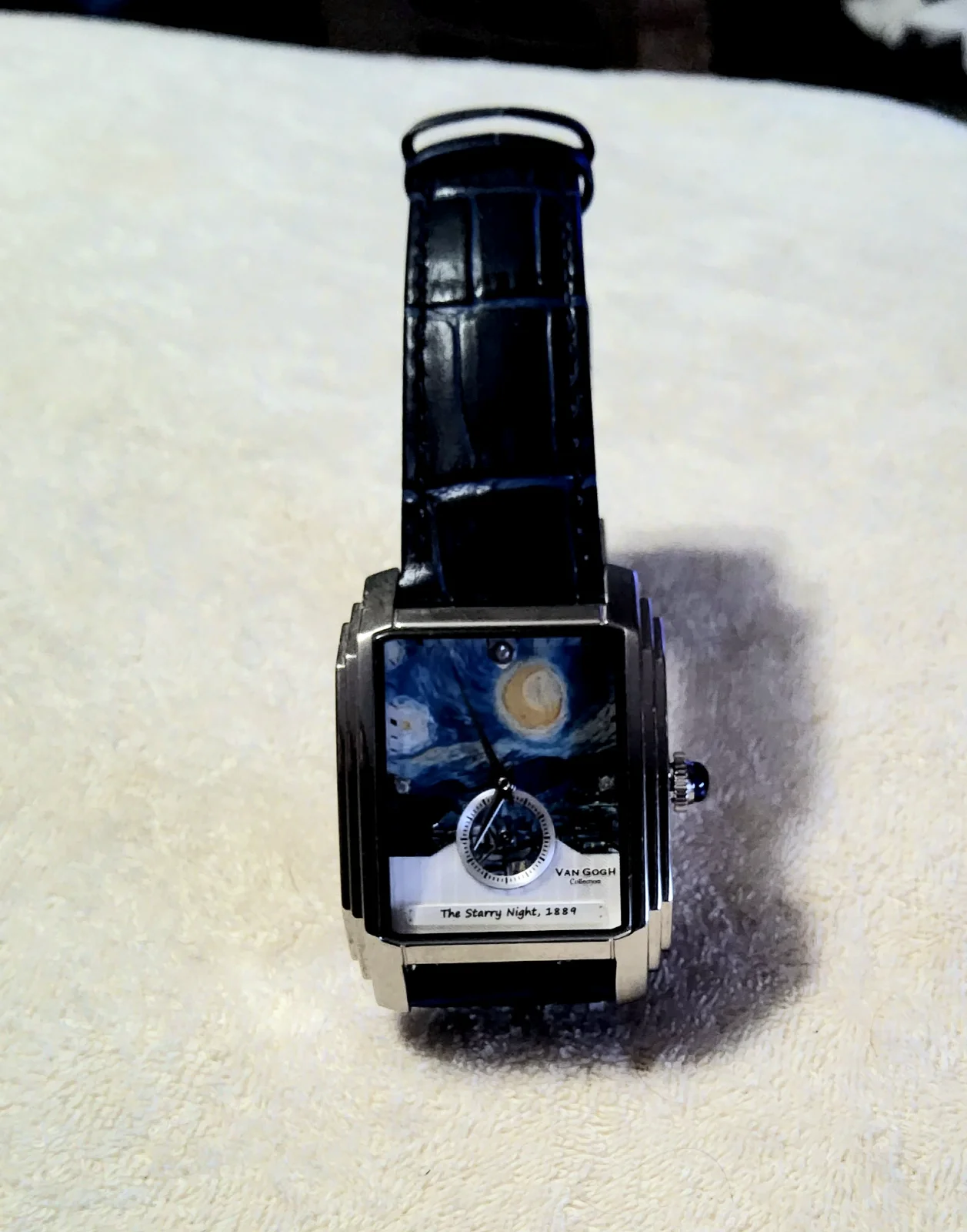 Ánimo!! 💪💪💪Debe ser por la debilidad que me produce la tortilla de antibióticos y anagfésicos que estoy tomando, o la profunda depresión de ver como de mi pie, sale ahora un montón de varillas de hierro sujetas por un soporte externo (No pondré foto, que hay corazones sensibles que incluso consideran comprar Lanscotte) pero en plena convalecencia he diferido un ataque de CRI espectacular y hoy llevo una de las últimas adquisiciones, un homenaje a "la noche estrellada" de Van Gogh comprado en su propio museo y adquirido pir mi en dura subasta de catawiki.