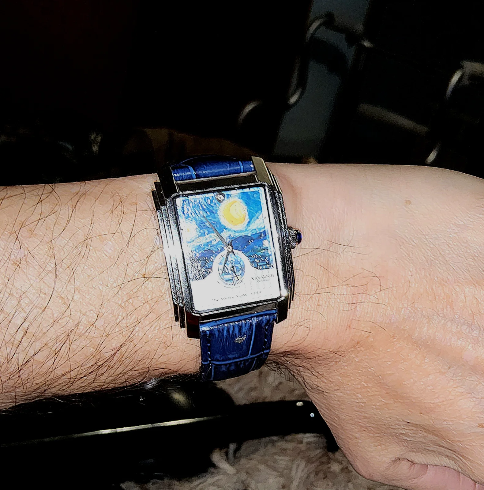 Que te mejores pronto, compañero.. Ánimo! 👍🥂Debe ser por la debilidad que me produce la tortilla de antibióticos y anagfésicos que estoy tomando, o la profunda depresión de ver como de mi pie, sale ahora un montón de varillas de hierro sujetas por un soporte externo (No pondré foto, que hay corazones sensibles que incluso consideran comprar Lanscotte) pero en plena convalecencia he diferido un ataque de CRI espectacular y hoy llevo una de las últimas adquisiciones, un homenaje a "la noche estrellada" de Van Gogh comprado en su propio museo y adquirido pir mi en dura subasta de catawiki.