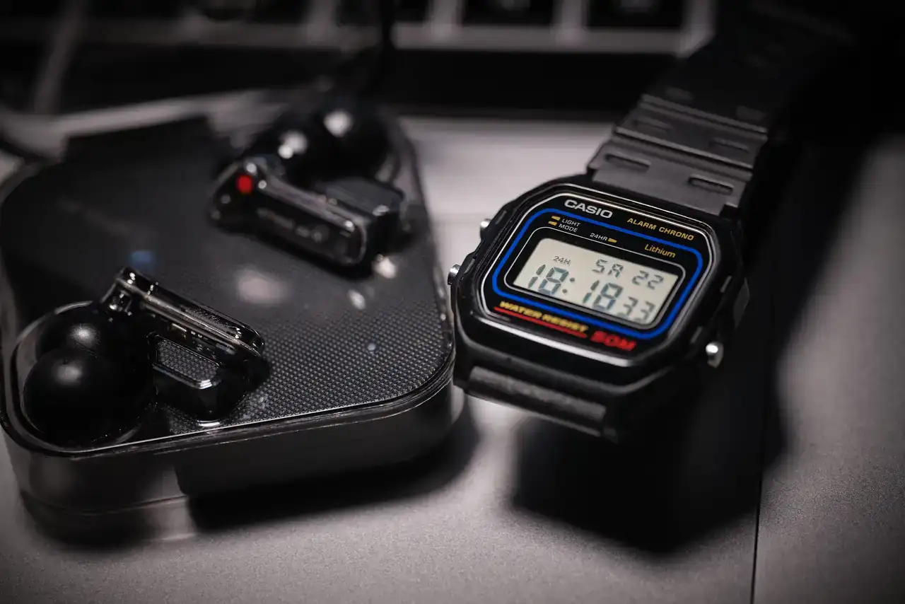 Me parecía el F-91W de toda la vida, gracias por enseñarlo...Esta mañana he salido a pasear en chándal con mi G-Shock GW-M5610U-1, una verdadera obra de arte. Pero el verdadero protagonista, tanto hoy como cada día cuando llego a casa y me pongo cómodo, es mi Casio W-59-1VQ. Es ligero, resistente al agua hasta 50 metros, y cuenta con funciones básicas como alarma y cronómetro. Su diseño retro al estilo Space Invaders es perfecto, y su relación calidad-precio, insuperable. En la foto, también podéis ver mis cascos Nothing Ear, que comparten esa misma estética tecnológica que me transporta a la infancia. 🕹️⌚