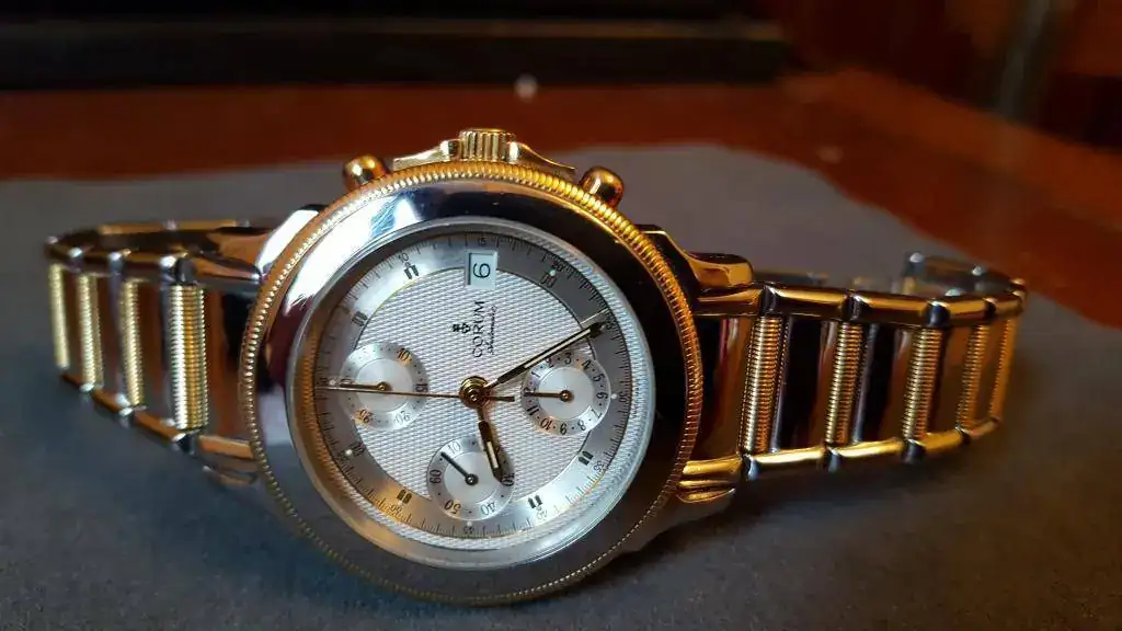 Aquí te lo pogo con su armis, pero me da que alguno sentiría tentaciones de cortar muñecas.Aunque a mi me gusta más con su correa.Precioso ese Corum, no te lo había visto