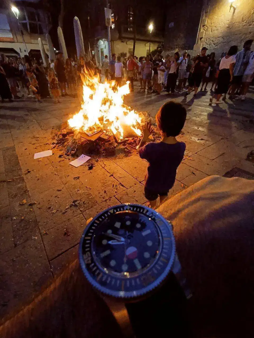 Acabo de ver la foto que subí anoche, y me he quedado sorprendido con el saludo con el que responde el fuego a la mano de mi hijo... 😱