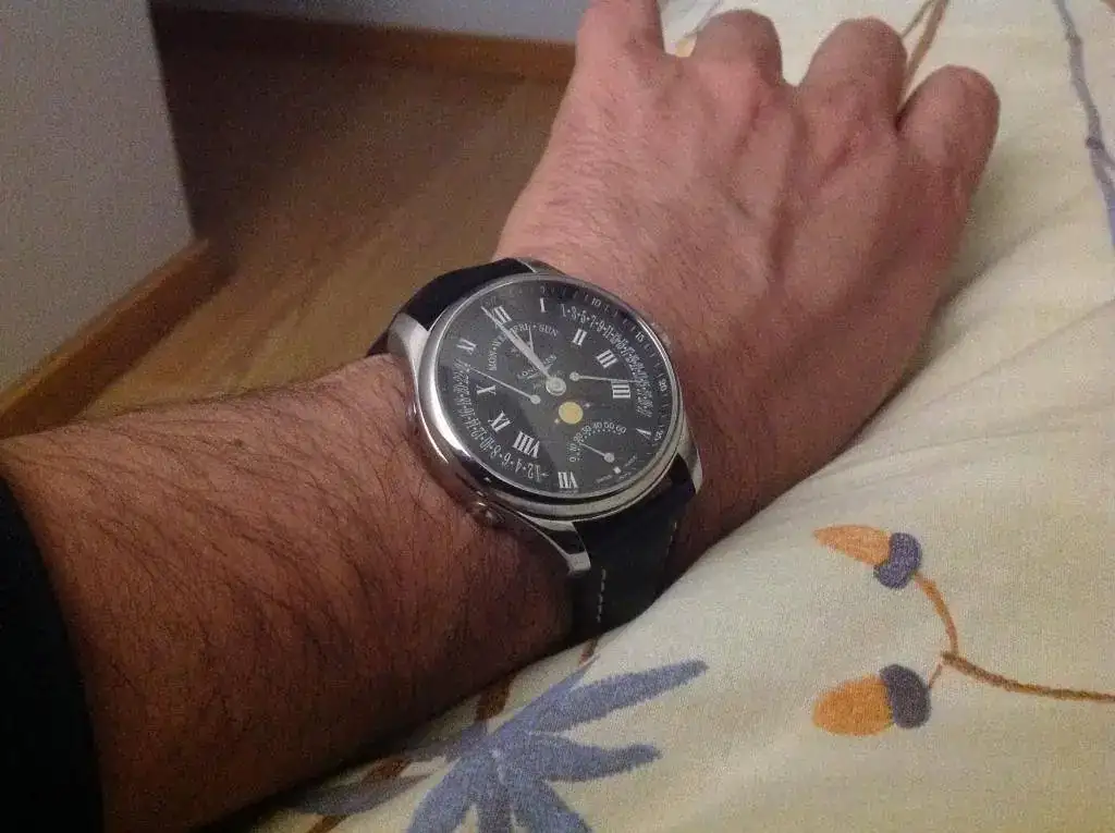 Estrenando mi nuevo retrógrado...no he podido resistirme y esperar a Navidades. Luce con su luna, me apetecía graduarlo otro día...
