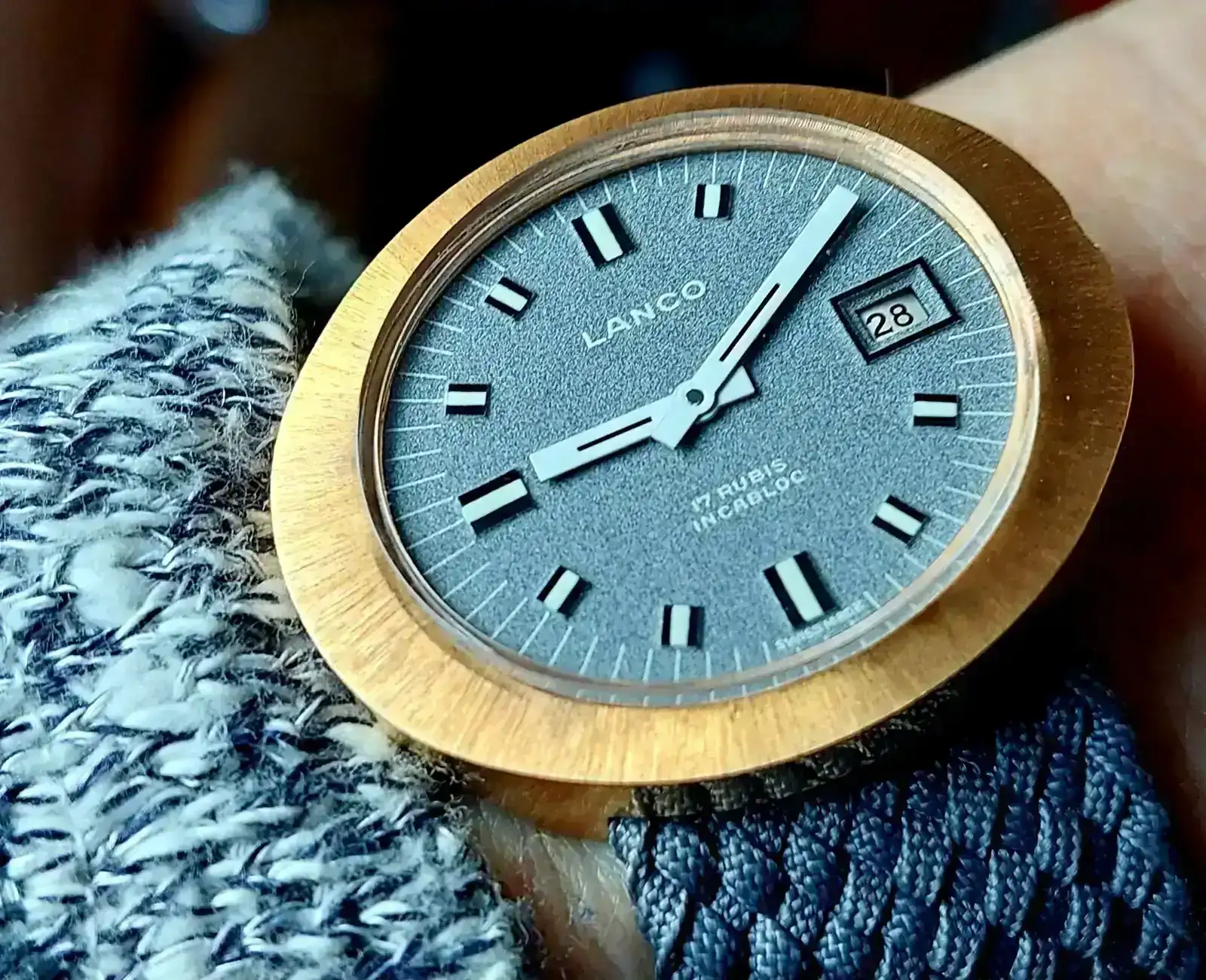 Sergi, es un piloto mecánico crono con calibre H51-SI manual, la correa no es la original, está hecha por Jacobo, Moltes gràcies company!!!me alegra que te guste.Que preciosidad de Hamilton, ¿Qué modelo es?