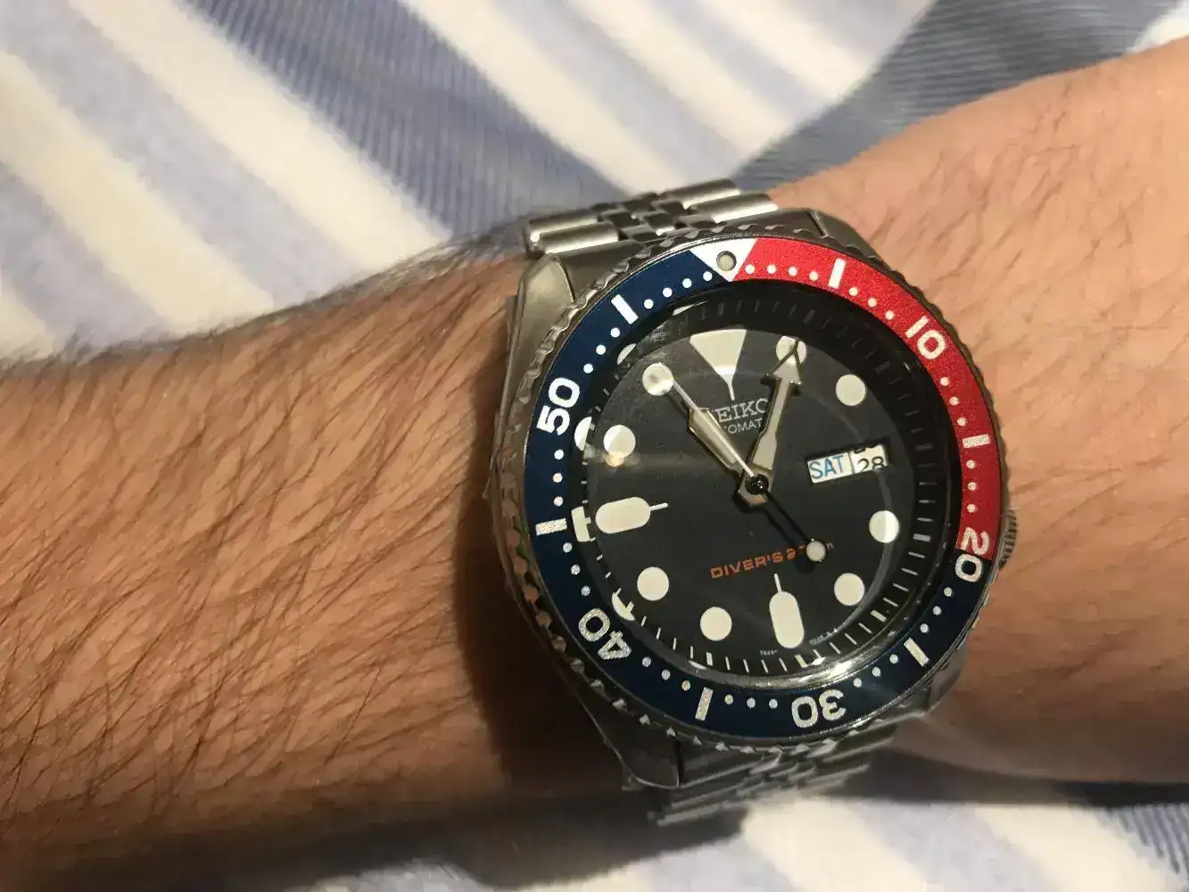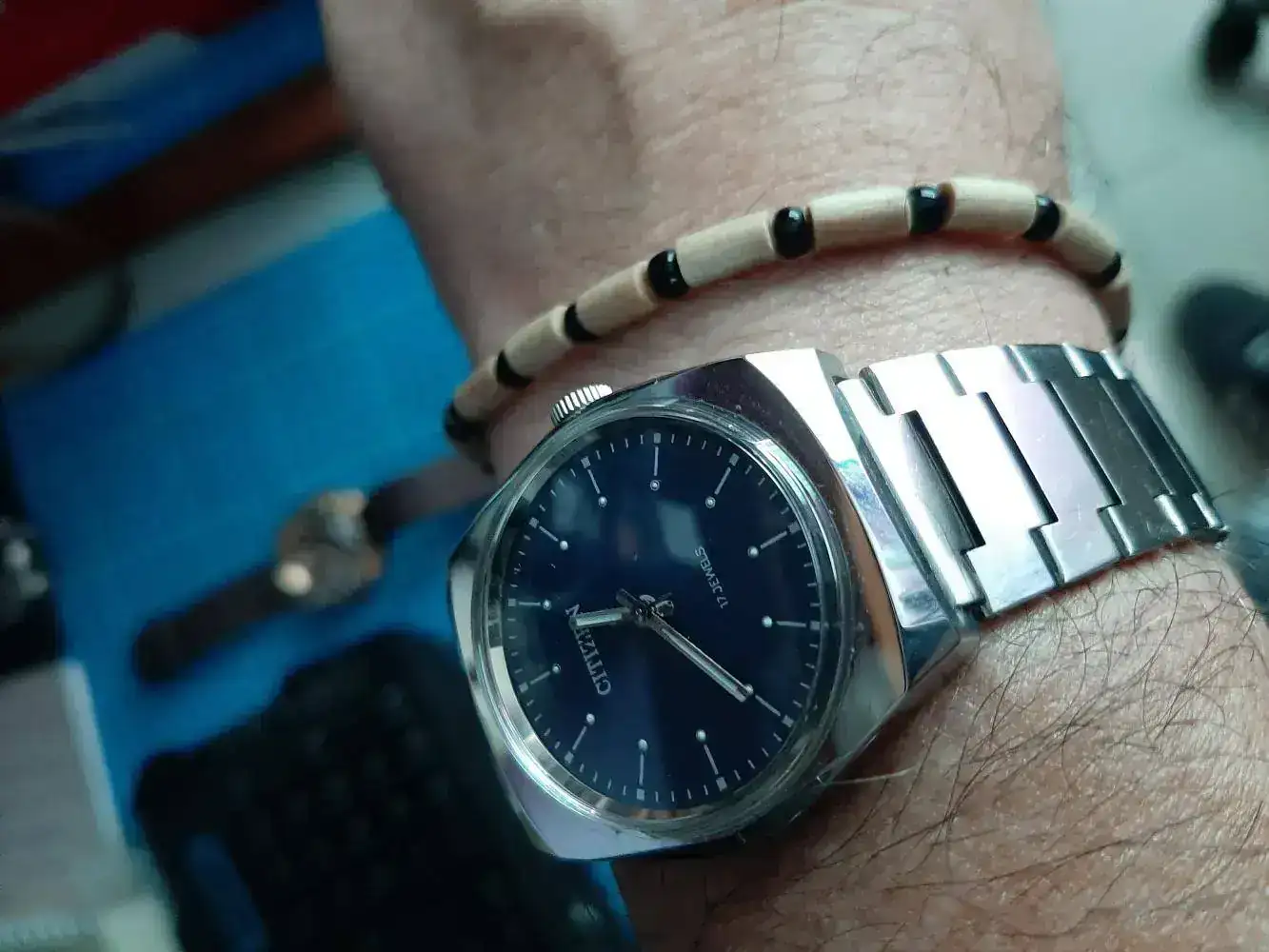 Hoy toco este, que pertenece a mi hijo, pero, en su ultima incursion en mi caja, se agencio un Orient automatico tamaño cadet, le pedi prestado este pequeñin, de carga manual, probablemente de los 70´s, cuando la marca ensamblaba sus relojes en Mexico.