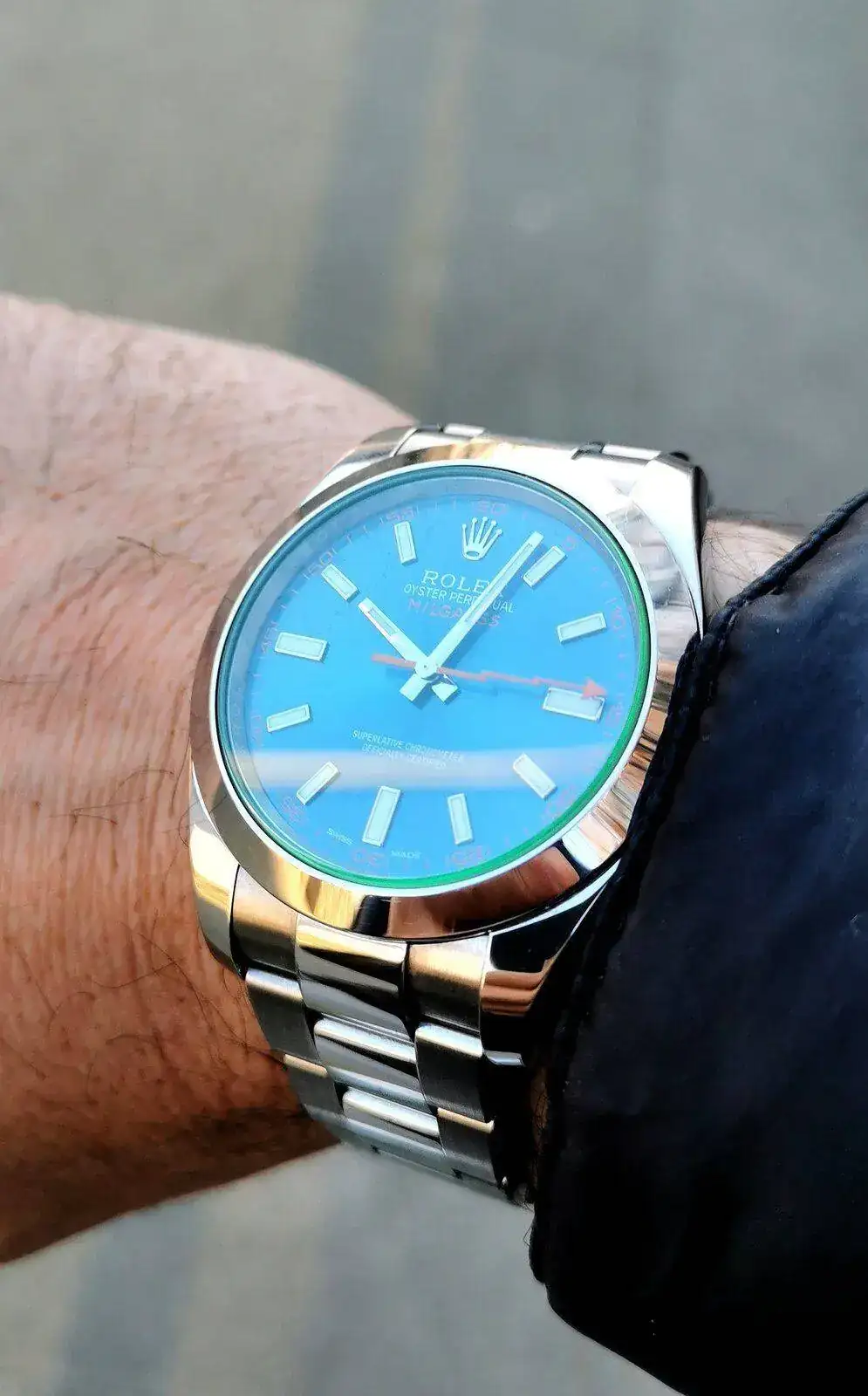 Haber si le pasamos una gamuza a ese Rolex, que parece que le salió moho verde en el cristal.