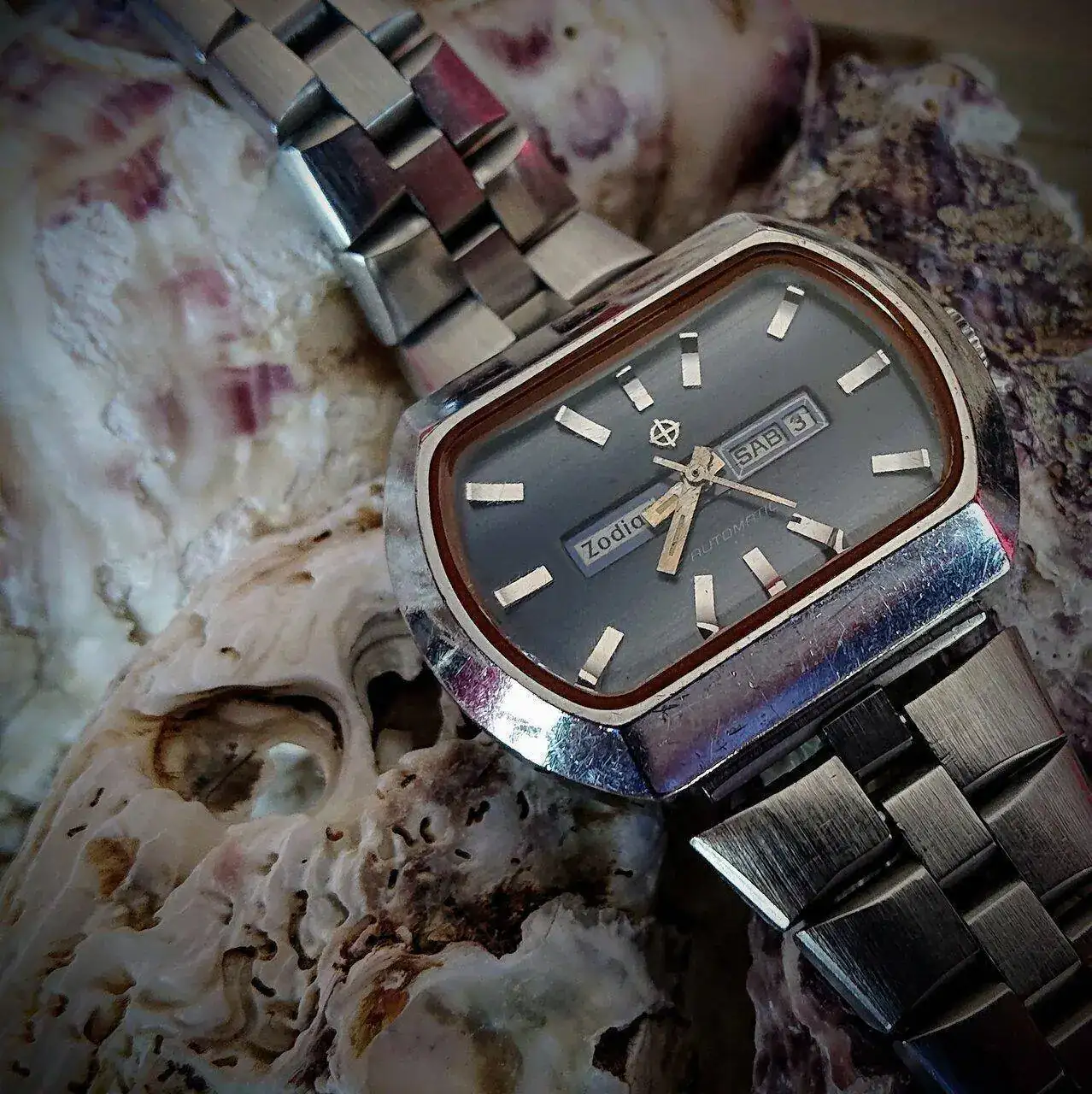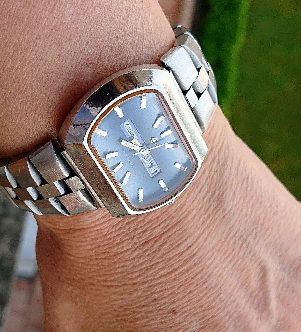 Muy chulo!!!¡Buenos días! Zodiac acelerado para hoy, con un brazalete comodísimo: eslabones macizos, perfectamente articulados, una gozada de peso que se apoya en la muñeca como si se imantase. ¿Por qué no se harán así ya?