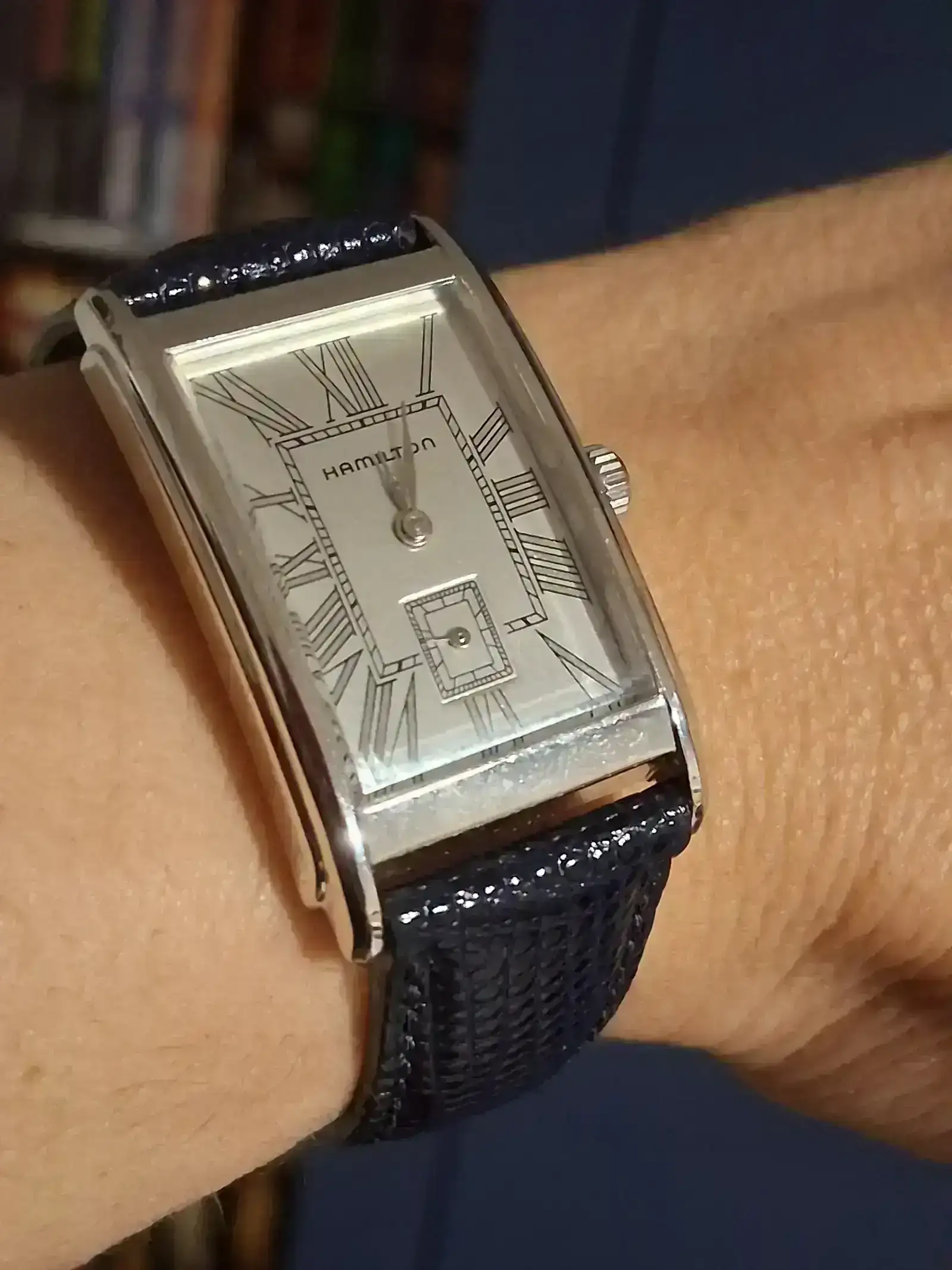 Cada vez me miro con mejores ojos los relojes cuadrados. Tú Hamilton precioso.Como cada noche cambio de reloj.