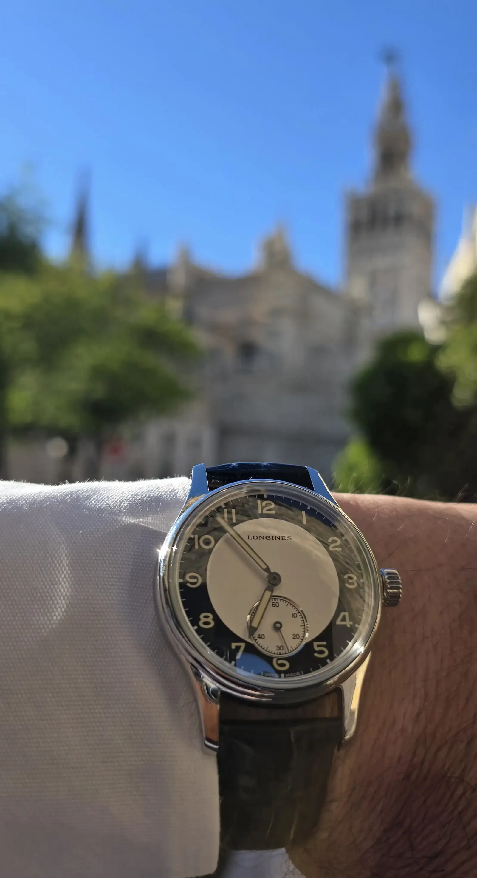 Mientras tanto, el disfrute de la primera puesta de un sobrio y comedido Longines Tuxedo.