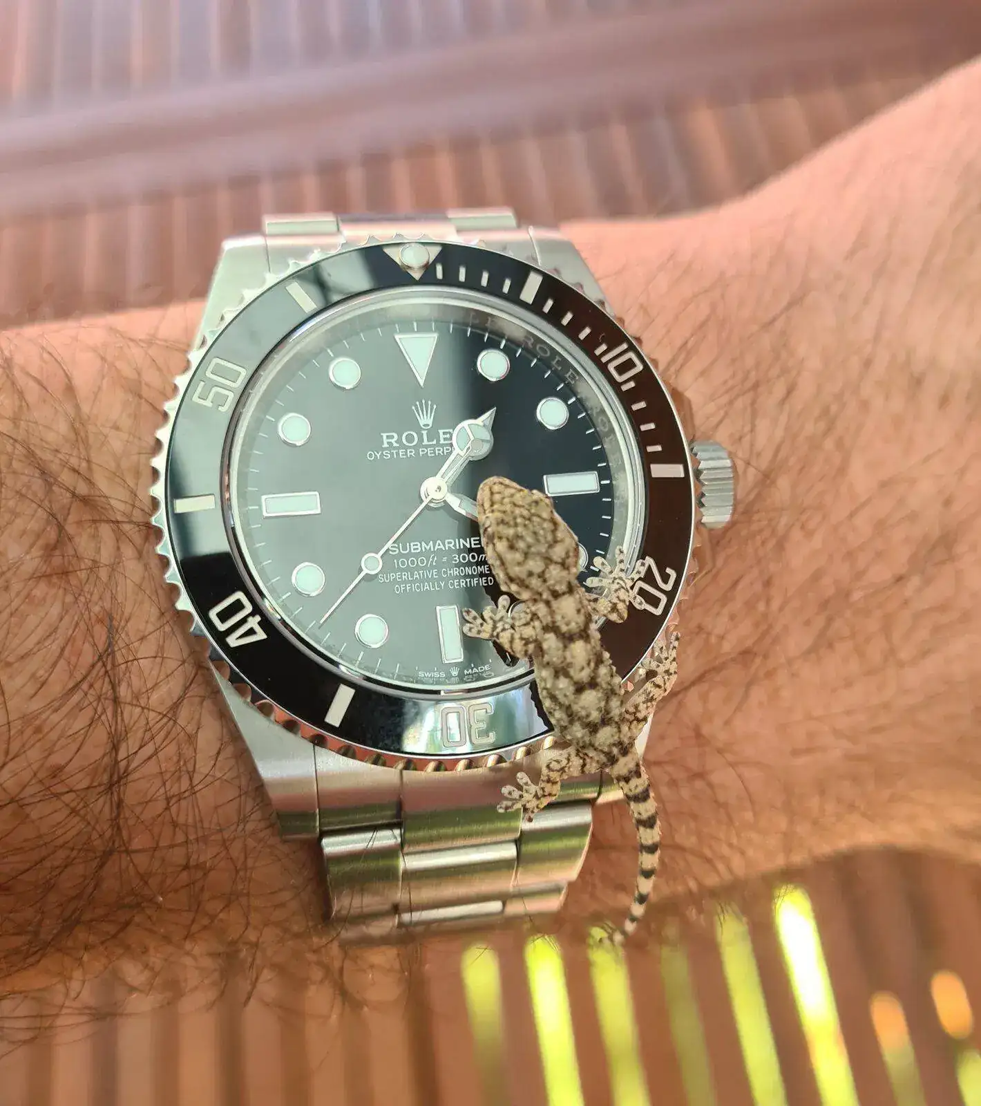 Un gecko verdad? Que bichito tan simpático... y de buen gusto en materia de relojes!!Hoy haciendo amigos. Buen finde!!!