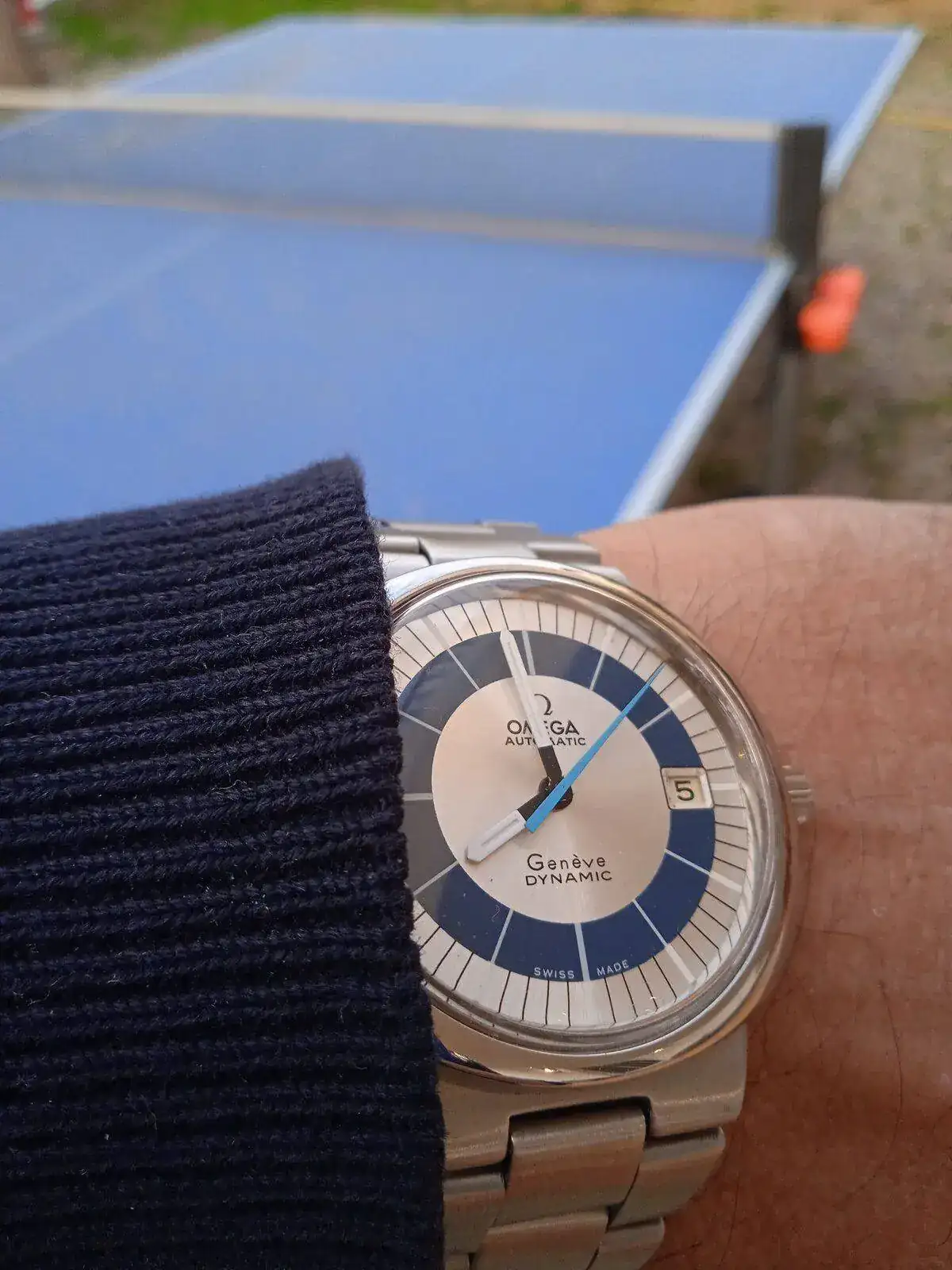 Muy chula la esfera y estos azules de este Omega, con el azul de la mesa de pinpon de fondo, complemento perfecto !.