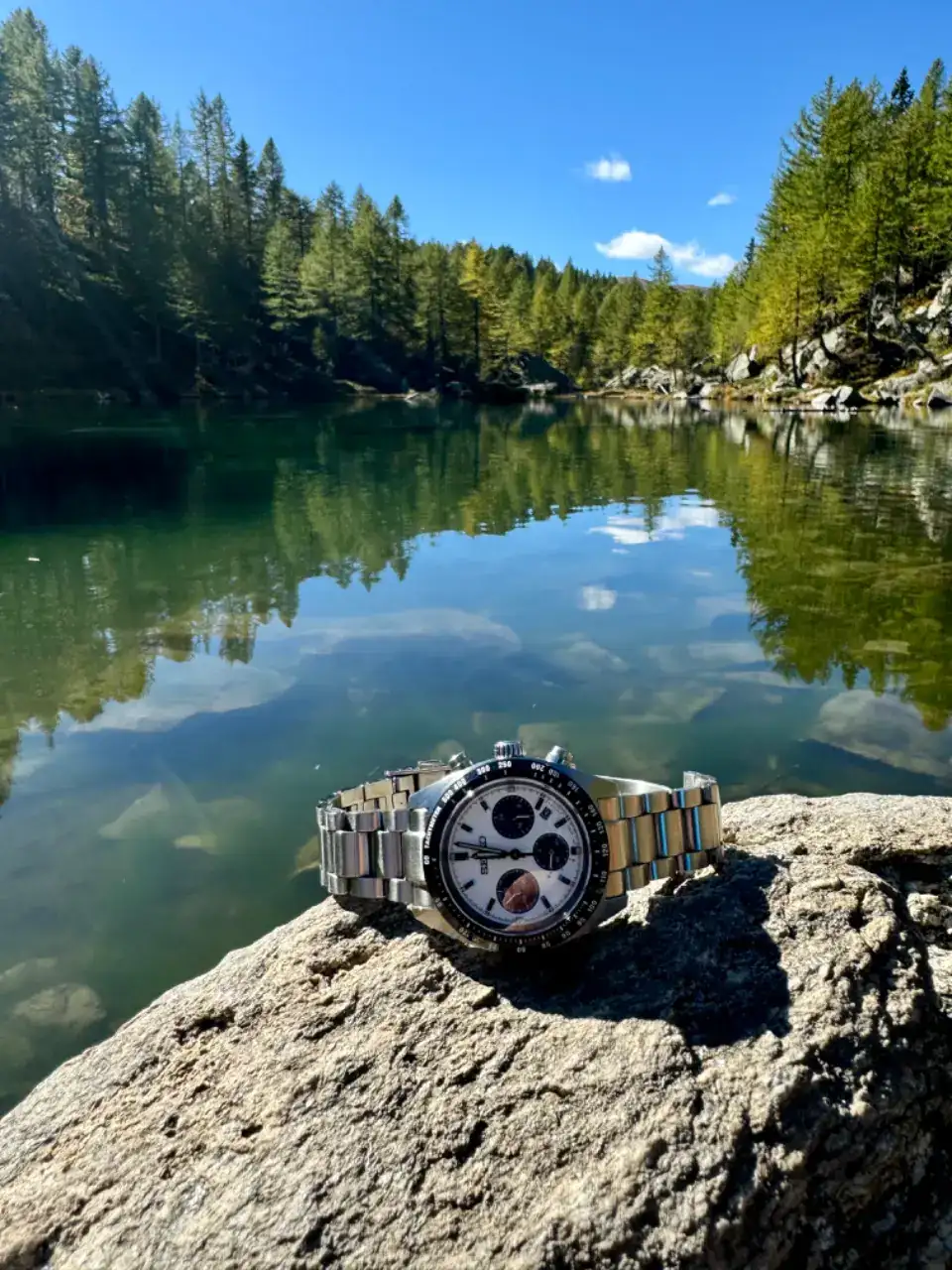 Ah, ahora lo entiendo.Pues porque he visto tu foto esta mañana y me ha dado sana envidia el reloj. Lo he usado bastante este verano con un caucho naranja que le quedaba, a mi entender, bastante bien para las fechas pero pasado agosto estaba durmiendo el sueño de los justos. Tras ver el tuyo, le he cambiado los pantalones y lo he sacado a dar una vuelta.
