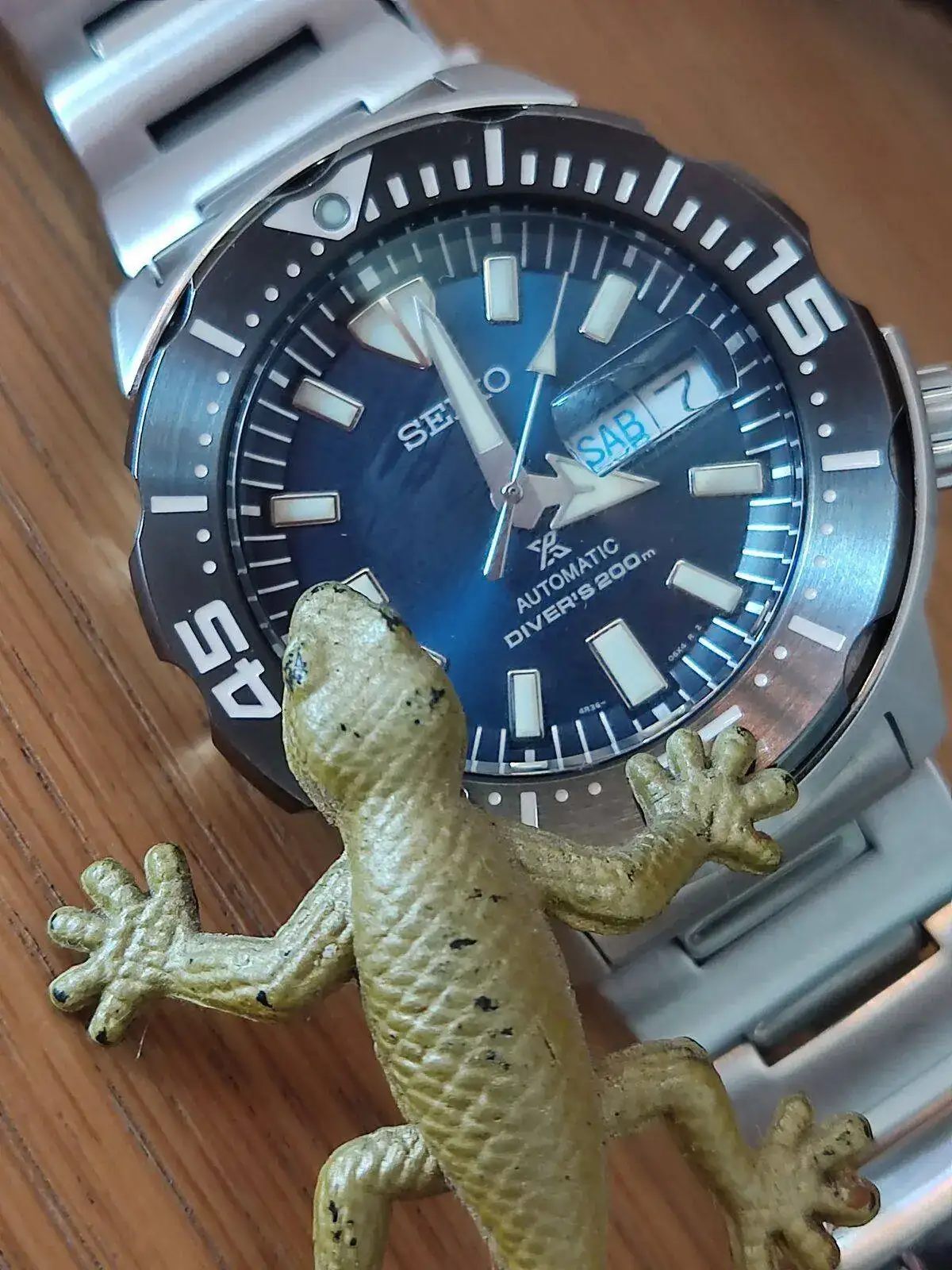 Disculpa, pero yo no he hecho ningún homenaje al compañero Martinss, con todo el respeto para él. Simplemente me gusta acompañar las fotos de relojes con algo mas, sea lo que sea, lo escoja o lo tenga a mano en ese momento. Veo también que en general la escala que utilizamos en nuestras miniaturas es distinta, entiendo que las figuras que utiliza Martinss, son escala 1/87, y la que he utilizado del submarinista en la foto de hoy es 1/35. Uede que tanto a Martinss como a mi nos guste el mundo de las miniaturas a escala y compartamos aparte de los relojes, la afición al modelismo o a las miniaturas a escala, pero de momento no le he hecho ningún homenaje porque debe de seguir vivo, eso espero, saludos.
