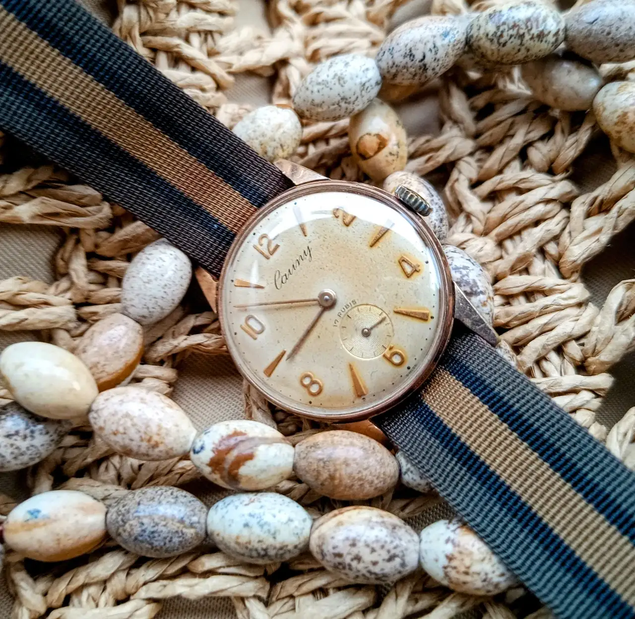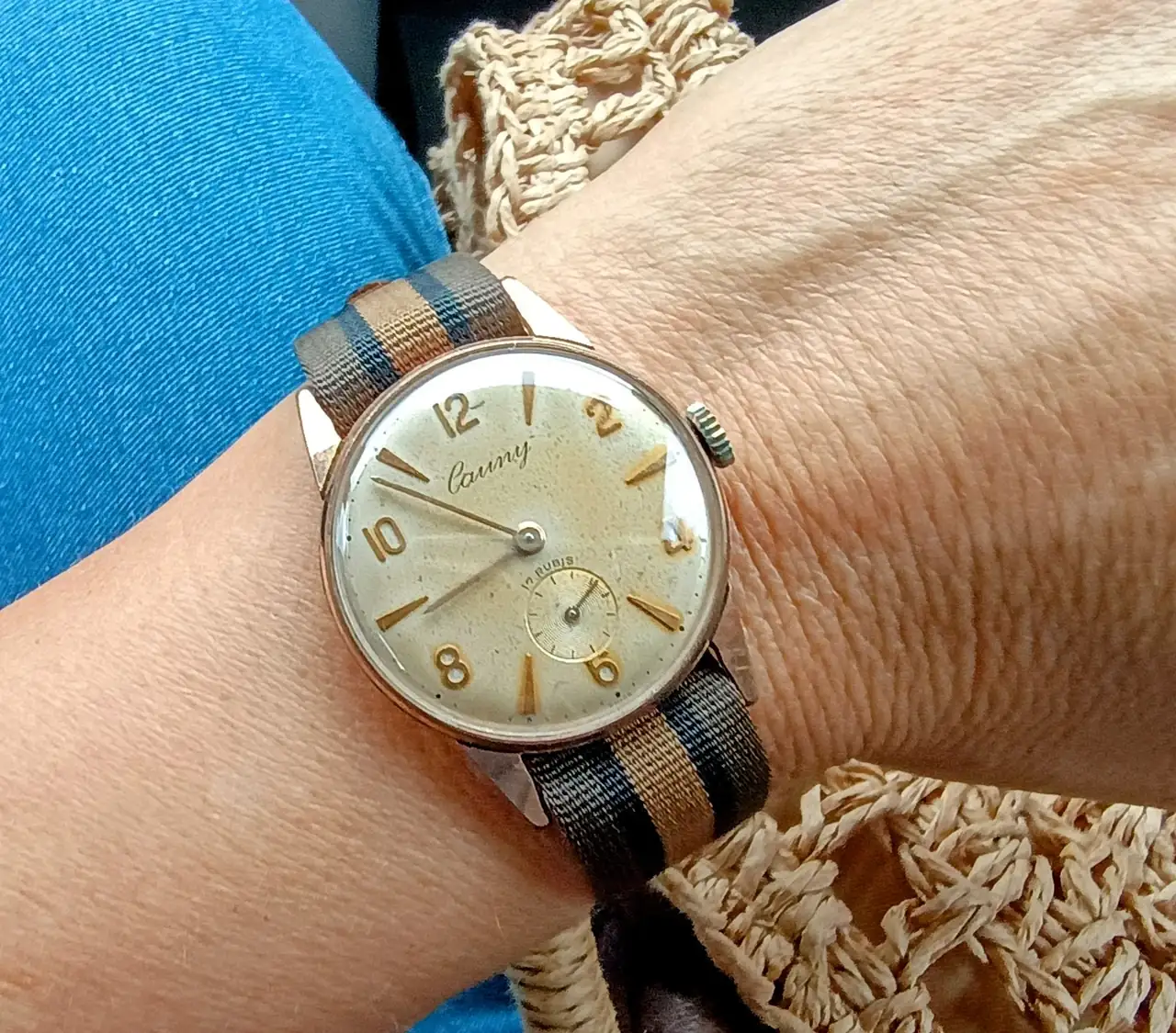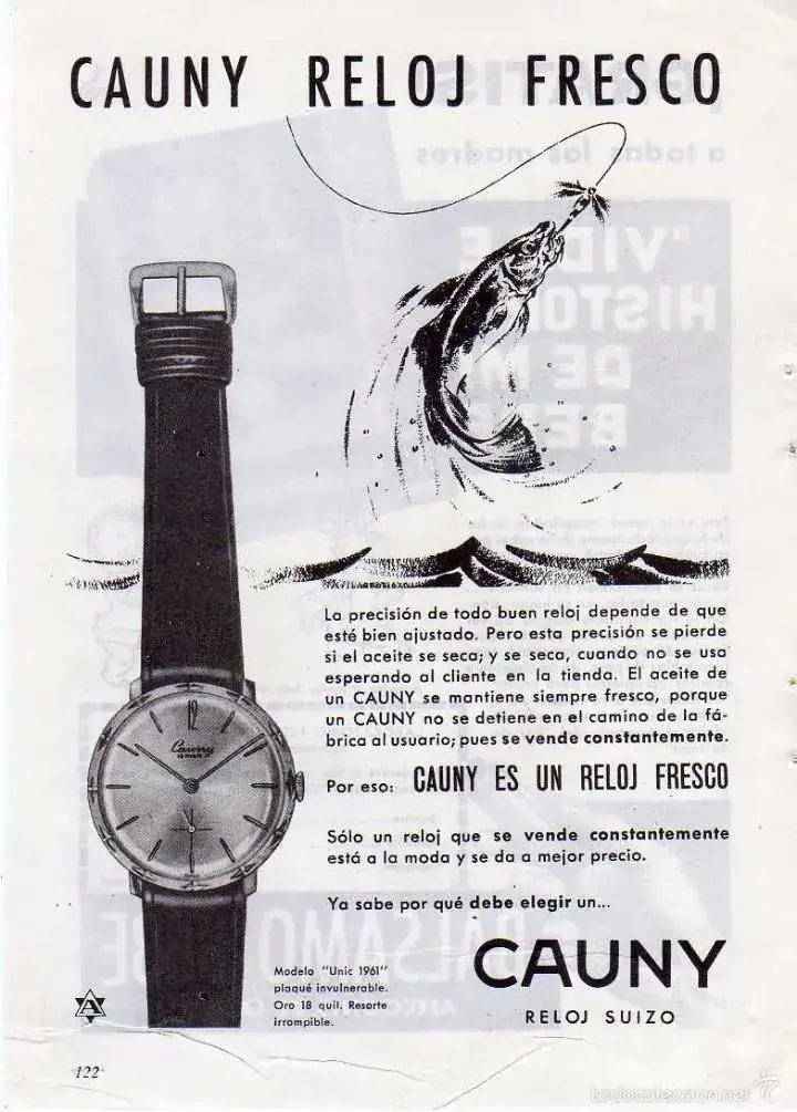 Cauny fue una marca suiza creada por un distribuidor de relojería español y es por eso que fue en este mercado donde se encuentran casi todas sus piezas. Una marca alejada del lujo que montó calibres de buena calidad, ofreciendo relojes asequibles que cumplían perfectamente su función. Fueron muy populares y junto con Dogma posiblemente de las marcas humildes más populares en la España en los años 50 y 60 (incluso principios de los 70) y ambas comercializaron algunas de las esferas texturizadas más vistosas de la época (foto de la web)