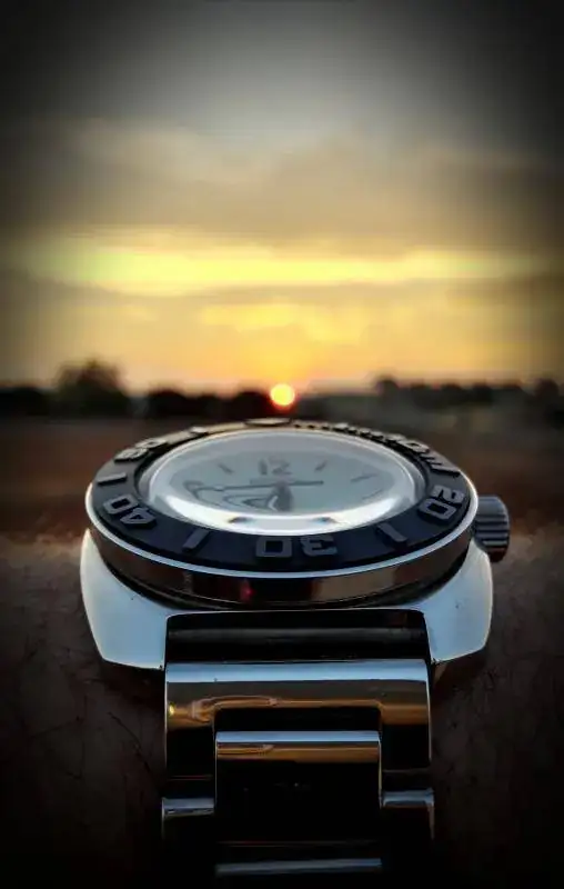 La puesta de sol ...preciosa. Pero al reloj no hay forma de verlo.
