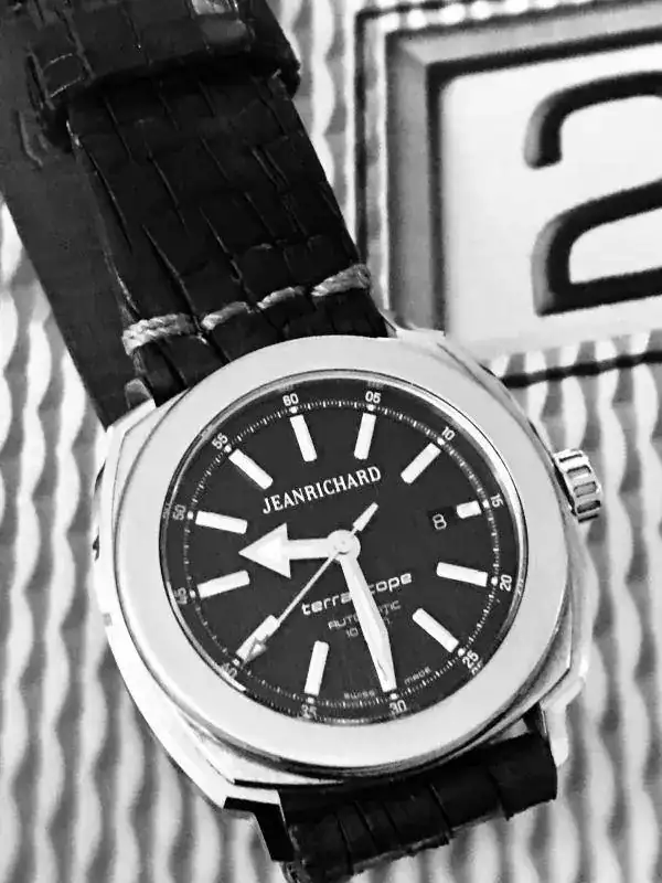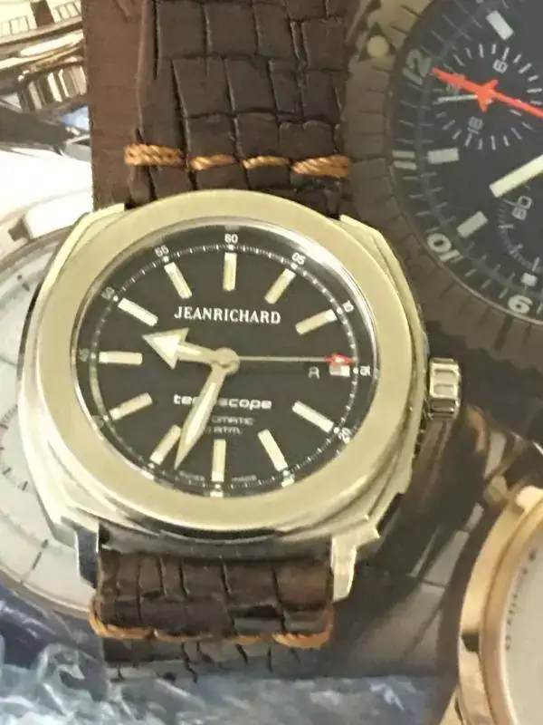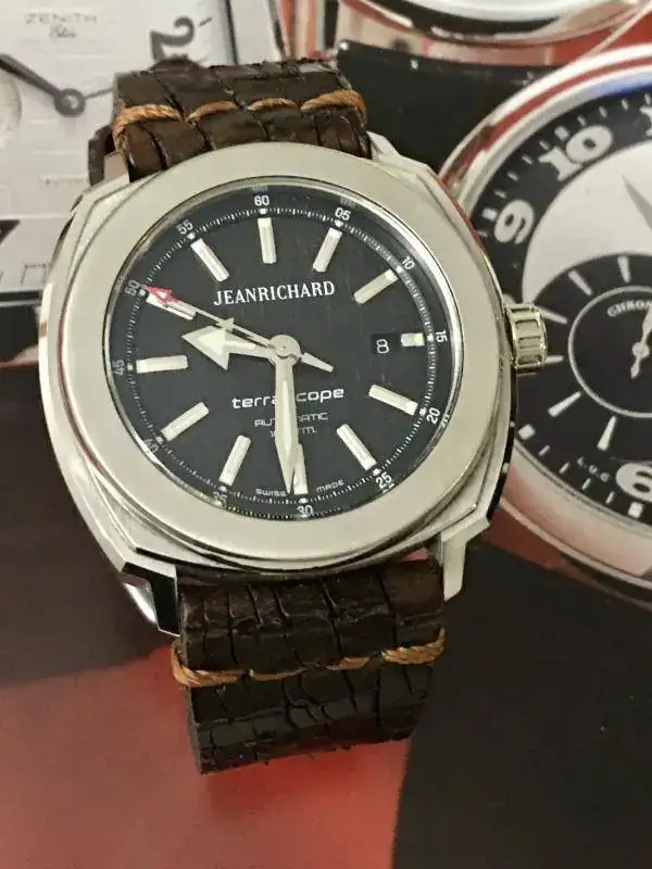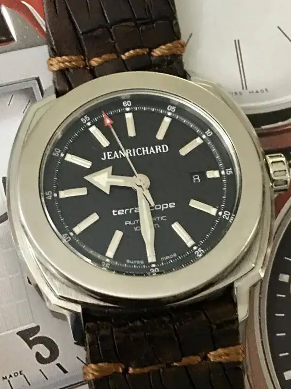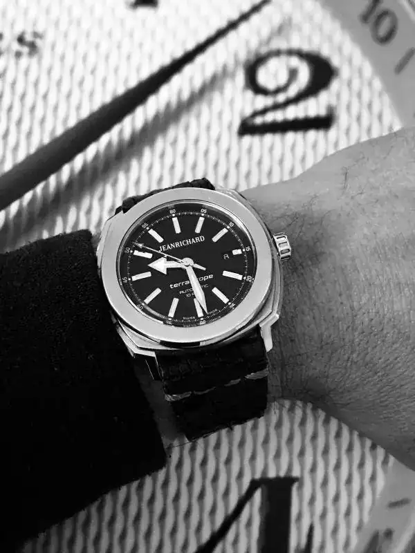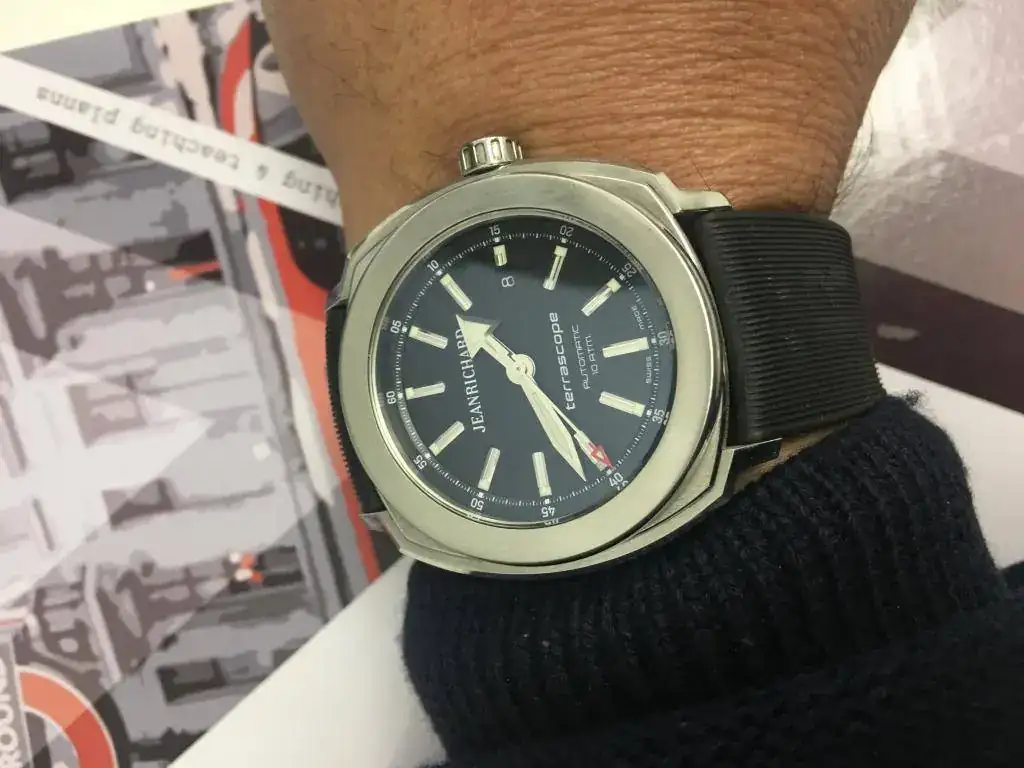 Con todos ustedes, mi Jean Richard Terrascope. Un relojazo a mi humilde entender, pues casi todo el mundo sabe que no soy ningún entendido, pero me gusta elegir mis piezas por su valor estético al mismo tiempo que relojero. En este caso estoy muy feliz por haber dado un salto cualitativo en mi colección. Y la correa que le puesto es una Mansarea que es una pasada de bonita y cómoda.