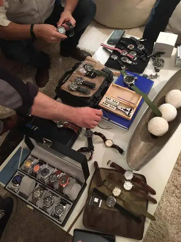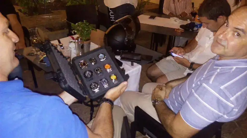 Al principio eramos unos pocos los que solíamos vernos habitualmente (es difícil a veces romper esas barreras de la comunicación acostumbrados a compartir la misma detrás de la pantalla de un ordenador) pero poco a poco nos fuimos reuniendo más, los cafés se transformaron en cenas y comidas, fijamos un lugar de reunión fijo un día a la semana, abrimos las puertas de nuestras casas y el grupo empezó a crecer exponencialmente al igual que nuestra amistad. Realmente es una experiencia muy positiva y un factor determinante para ello ha sido la gran heterogeneidad de nuestro grupo. Este factor ha hecho que podamos admirar relojes de todo tipo desde los más baratos hasta los más caros. Vintage, últimos modelos, marcas top, otras desconocidas... A veces el desfile de modelos es simplemente abrumador y os aseguro que este contacto directo con los relojes hace que se pierdan muchos prejuicios que solemos tener los aficionados a la relojería hacia determinadas marcas o estéticas. Es simplemente muy enriquecedor.
