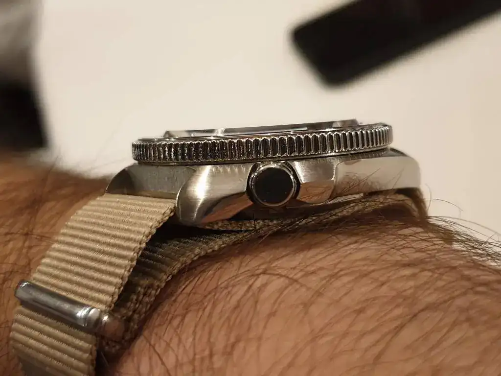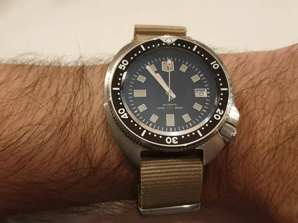 El SaÏmko esta dotado con el robusto y fiable calibre automático NH35, zafiro plano, sumergible a 200m (algunos compañeros ya los testado en actividades acuáticas que tanto nos gustan) acero 316...Mide 44mm sin corona (es un reloj contundente sin llegar a ser molesto o incómodo en la muñeca) Aquí una preciosa comparación que nos envió el compañero Massasins que ya disfruta de su ejemplar