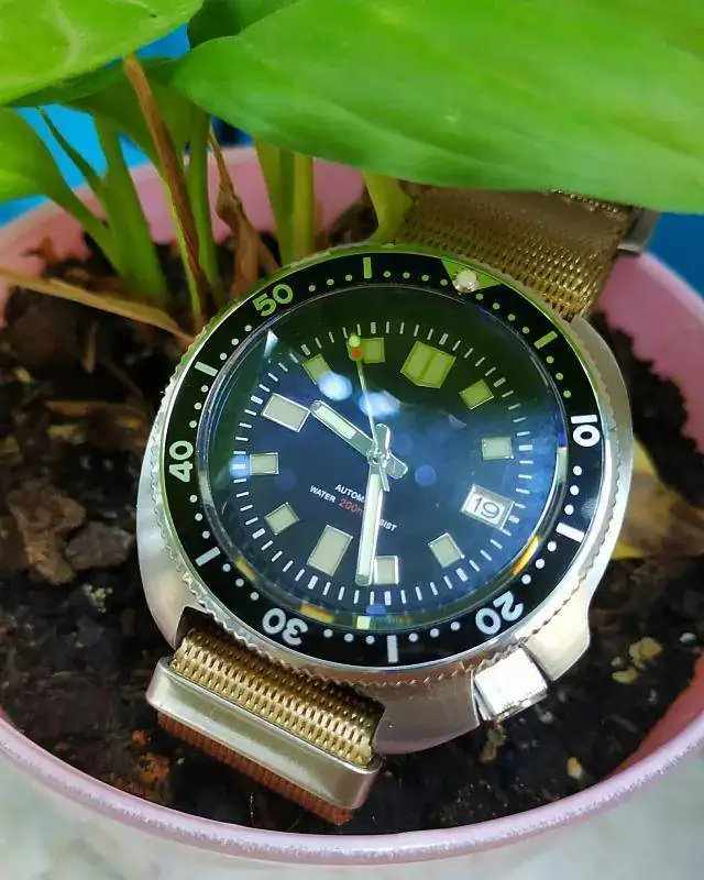 Como habéis podido adivinar se trata de un homenaje al Seiko 6105-8110, del que afortunadamente hemos podido disfrutar tanto del original como de la reedición actual realizada por Seiko SLA033 en nuestras reuniones