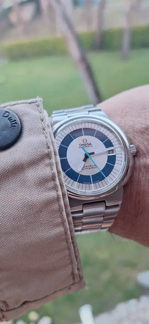Es el original y cierto era dorado pálido, pero se ha ido decolorando con los años y el sol (uso siempre en verano/playa/piscina). Como comenté hace bastantes años,13 en concreto, que lo pillé de segunda zarpa. Saludos.El insert no es el original del modelo