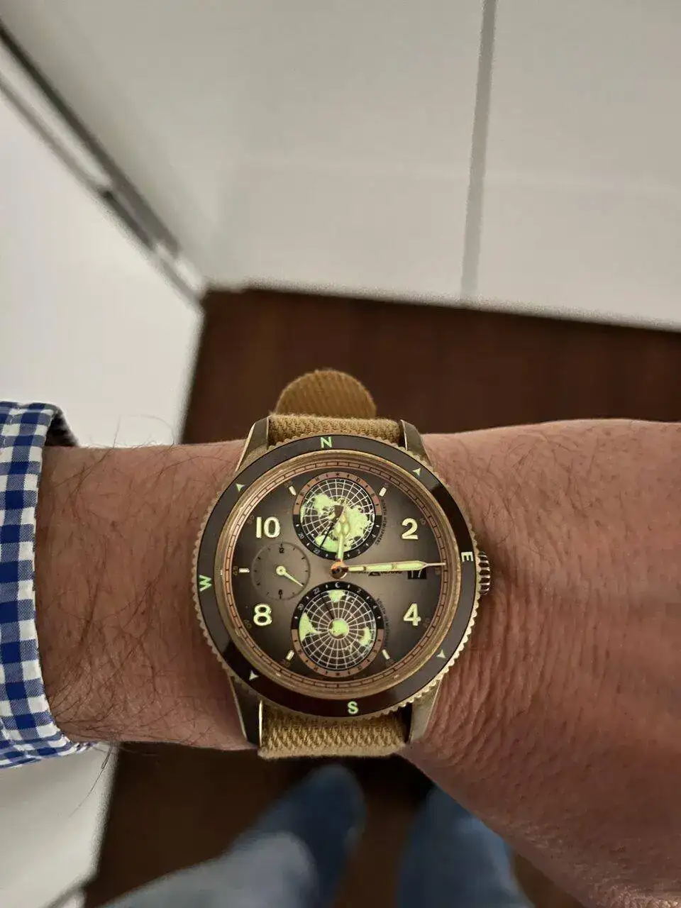 El color de la esfera es un espectáculo. Según la luz cambia la tonalidad del azul totalmente, desde un azul oscuro a un tono verdoso. Mi primer CW y encantado con la calidad que tiene.Vaya foto compañero! Eso es sacarle todo el potencial a ese CW . Fantástico