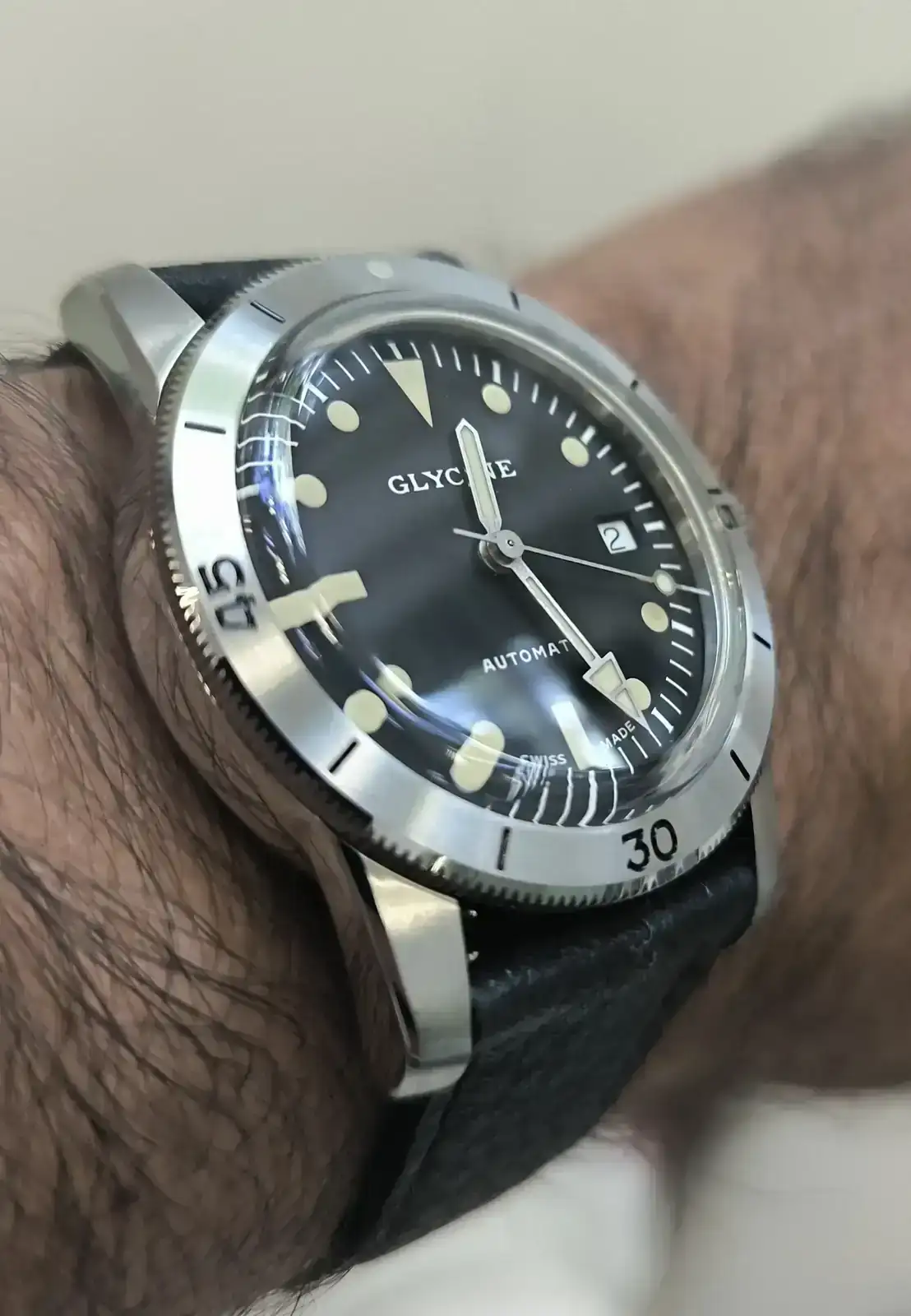Precioso. Que lo disfrutes. Ese cristal es una pasada.Buenos días, estrenando skindiver, el Sea Kraken, una edición limitada (300 relojes) de la marca Suiza que, según tengo entendido, inventó los GMT, Glycine.