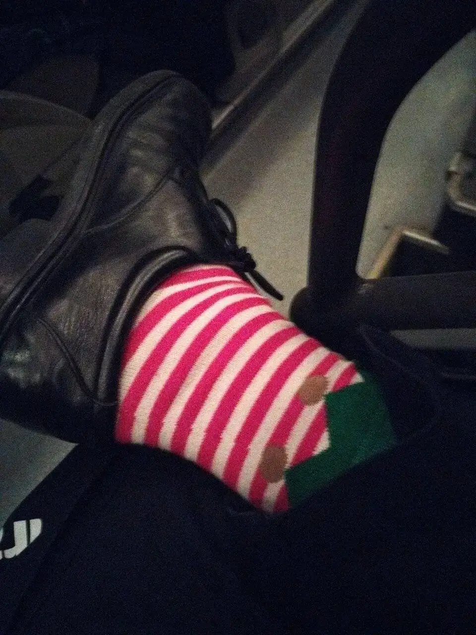 Hoy me he puesto mi pamstock, con calcetines navideños a juego.