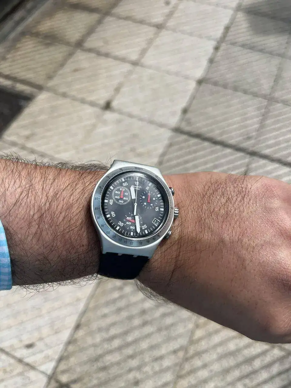Muy bonito y con intangibles!!!Hoy toca un swatch crono que me trajo mi padre hace casi veinte años de un viaje a Suiza, la inspiración es clara y podría considerarse el padre de un reloj que hoy está muy de moda.Ver el archivos adjunto 2640121