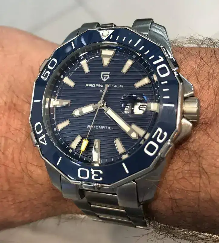 Pues hoy estreno este pequeñín de 50mm jijijijiji que en mi muñeca de 19,5cm todavía se ve grande, con el nuevo calibre H-50 con 80 h de reserva y un antirreflejante bastante bueno, he tenido la suerte de conseguir el 1 de 550 edición limitada y a pesar de su tamaño es muy cómodo de llevar con mangas cortas, os aseguro que se puede ver la hora a 50 metros de distancia, jejeje, espero que os guste.
