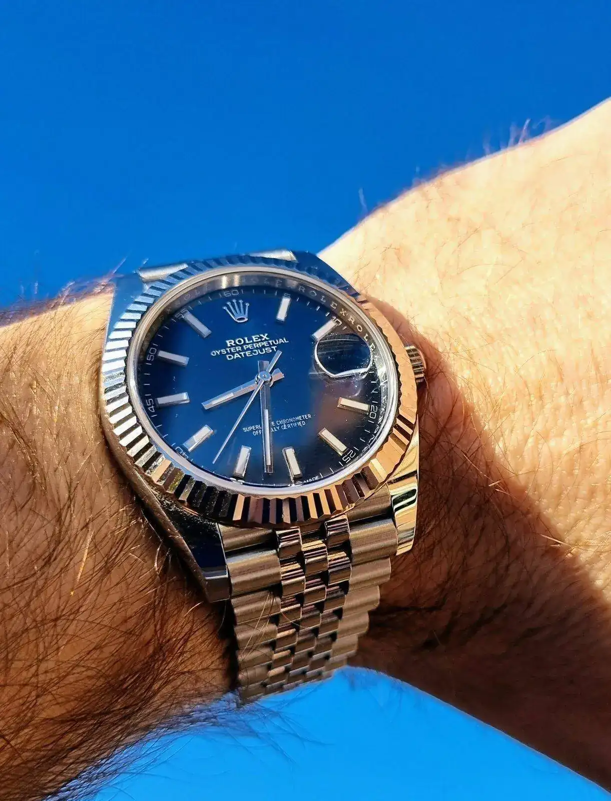 Como el mar, azul.