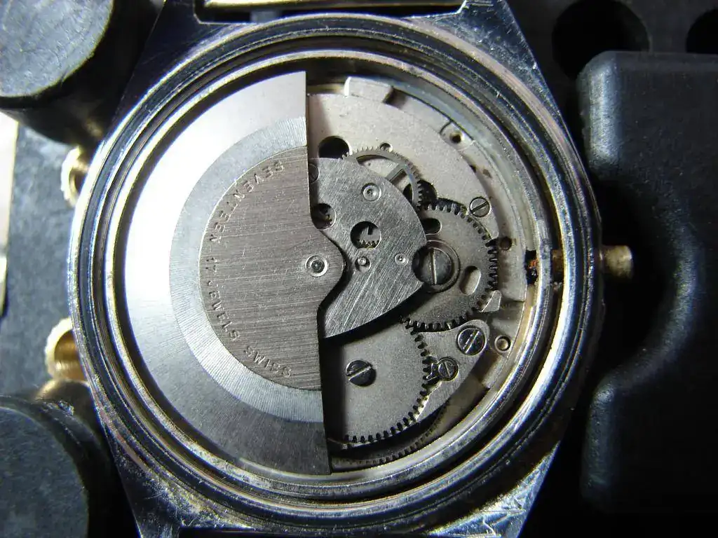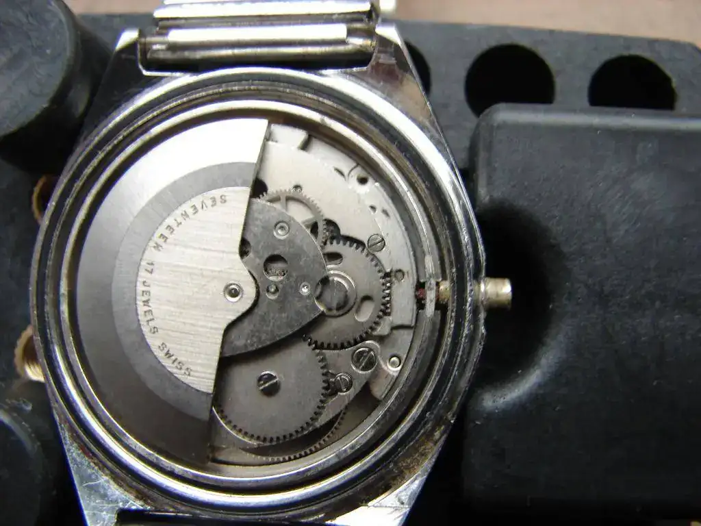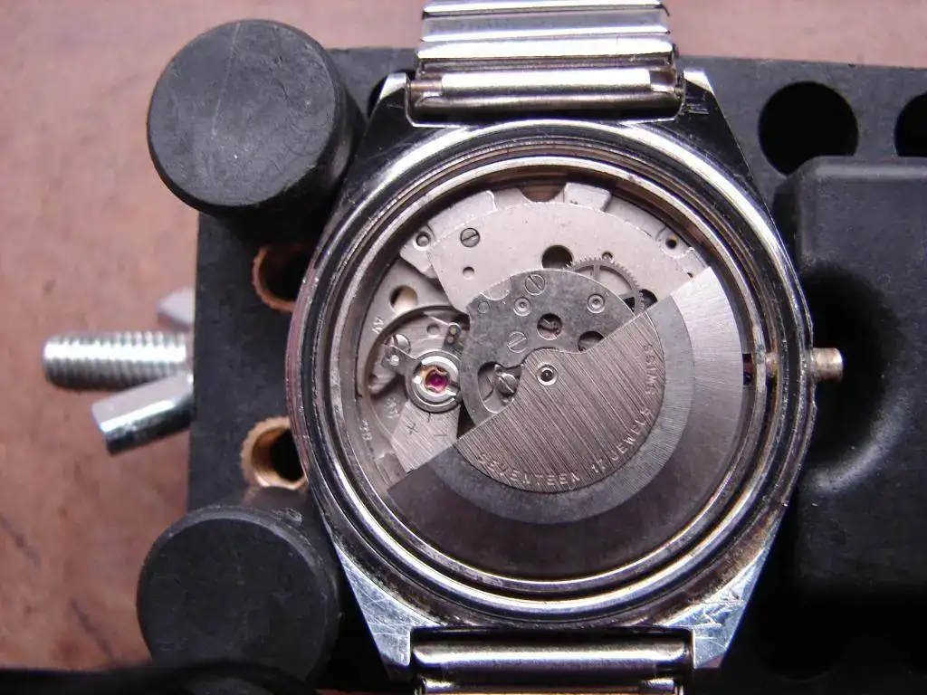 Estoy practicando con este reloj automático EXACTUS que debe ser de los 70. Hace unos 20 años se mojó en el mar y dejó de funcionar. Al poco tiempo se le cayó la corona y dejó parte de la tija dentro. Hace un mes se puso a funcionar sin que nadie lo tocara así que lo he abierto para ver cómo estaba y está bastante , a excepcion del conducto de la corona que aprece oxidado. Qisiera extraer la parte que quedó y sustituir la tija . Entros relojes del mismo tipo (Orient) , se ve claramente la pestañita que hay que presionar para que salga, pero en este no estoy muy seguro (soy principiante). Cualquier info se agradece de antemano.