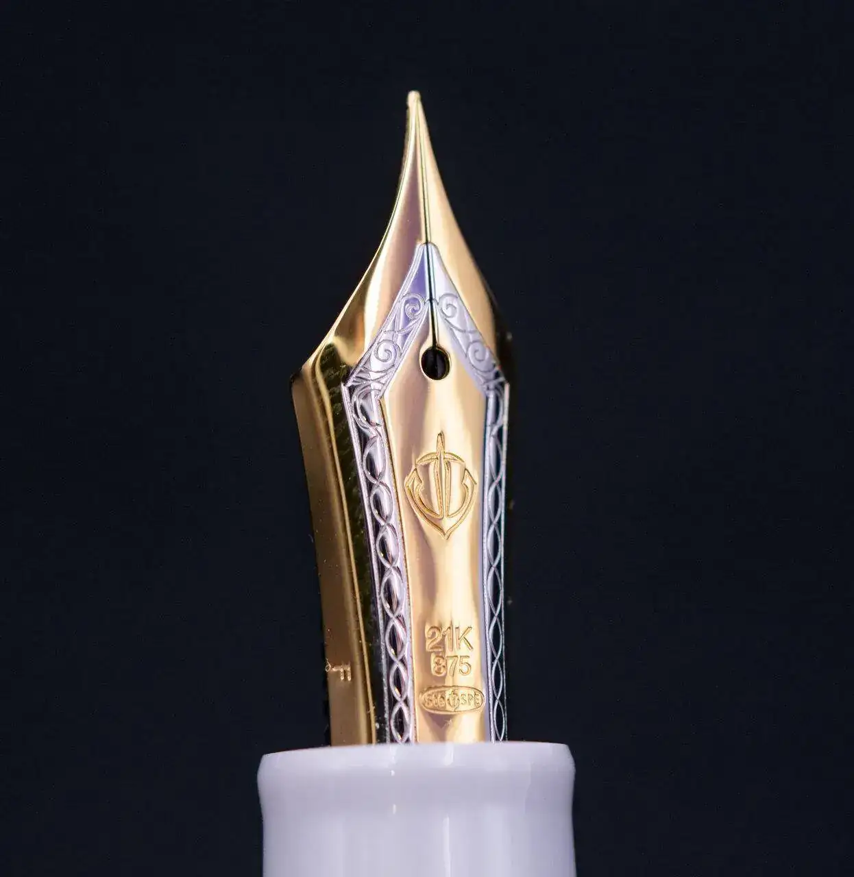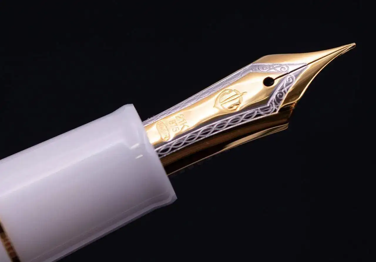 Con plumín de oro bicolor de 21 kilates en punto F.
