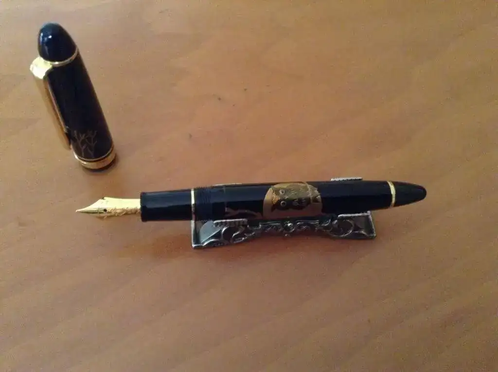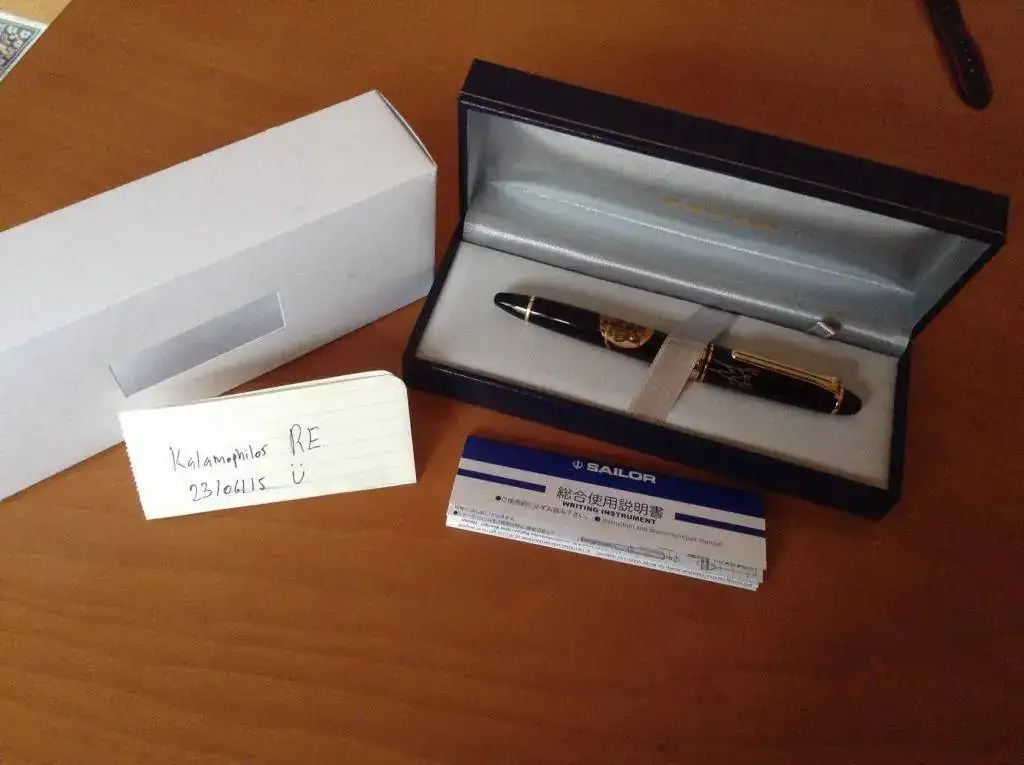 Pongo a la venta esta Sailor 1911 standard en urushi de gama media, de los que llaman "de plantilla". Esto quiere decir que la figura está dibujada con un modelo y la terminación es artesanal, pero no está hecho todo a mano. Es espectacular de cualquier manera, pero lo aclaro para que no queden dudas. Es una pluma de urushi que no te da miedo usar como una de esas obras de arte que cuestan una fortuna.