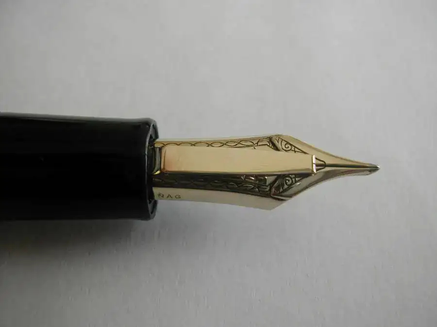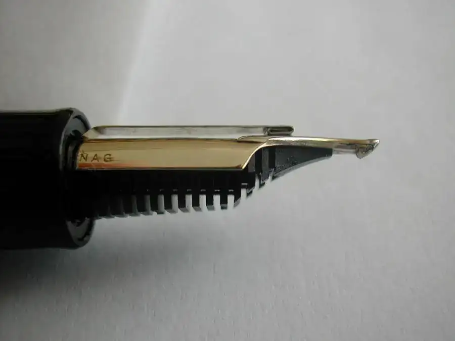 La barra superior es básicamente un "over-feed" que asegura el flujo cuando se usa toda la superficie de contacto. También parece retener un exceso de tinta en caso de apoyar con más inclinación. Esta barra es la que le dá el sobrenombre de Emperor al plumín.