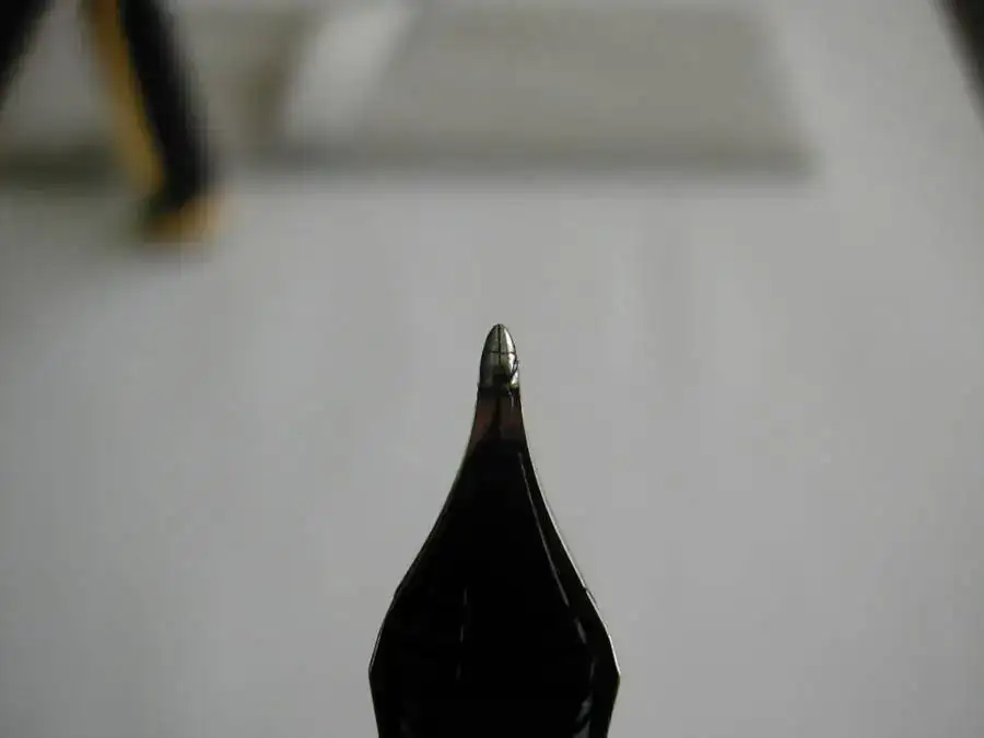 Como ya sabréis el Cross Point es un plumín montado sobre otro plumín lo que visto de frente se ve como una cruz, de donde sale el nombre. Esta posición conlleva un punto muy, pero que muy jugoso y una variación del punto en función de la dirección, horizontales gruesos y verticales finos. La forma ligeramente rendondeada de la punta permite además, variar el trazo con la inclinación de la pluma respecto al papel, manteniendo casi todo el efecto de "antistub".