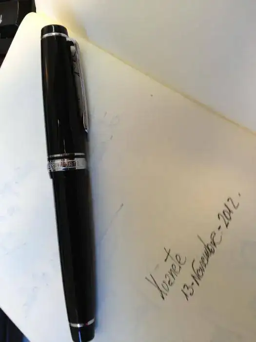 La verdad es que puedo confirmar todos los comentarios que había leído sobre Sailor y sobre éste modelo: acabados de auténticos maestros, escritura perfecta y a toda prueba. Su plumín bicolor en oro de 21 quilates es una preciosidad, eso sí, es un F japones en toda regla y ese es el único motivo por el que sale, demasiado fino para mis tendencias caligráficas actuales.