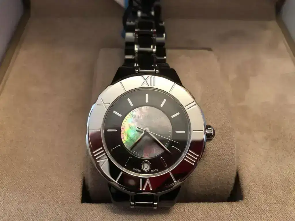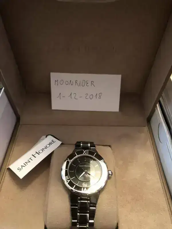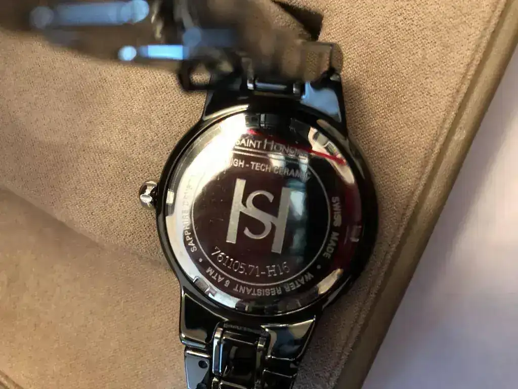 Hola, pues pongo a la venta este reloj swiss made de la firma francesa Saint Honoré se compro para un regalo y nunca ha llegado a estrenarse, va con plasticos, el reloj es de ceramica con esfera madreperla, cristal de zafiro y swiss made, viene en un estuche espectacular de piel con caja sobrecaja y completo de todo, excepto la garatia que esta sin rellenar ni sellar, es cuarzo y esta en funcionamiento, si buscas un regalo para estas navidades puedes aprovechar. Aqui teneis un enlace al modelo en la pagina oficial de la marca: