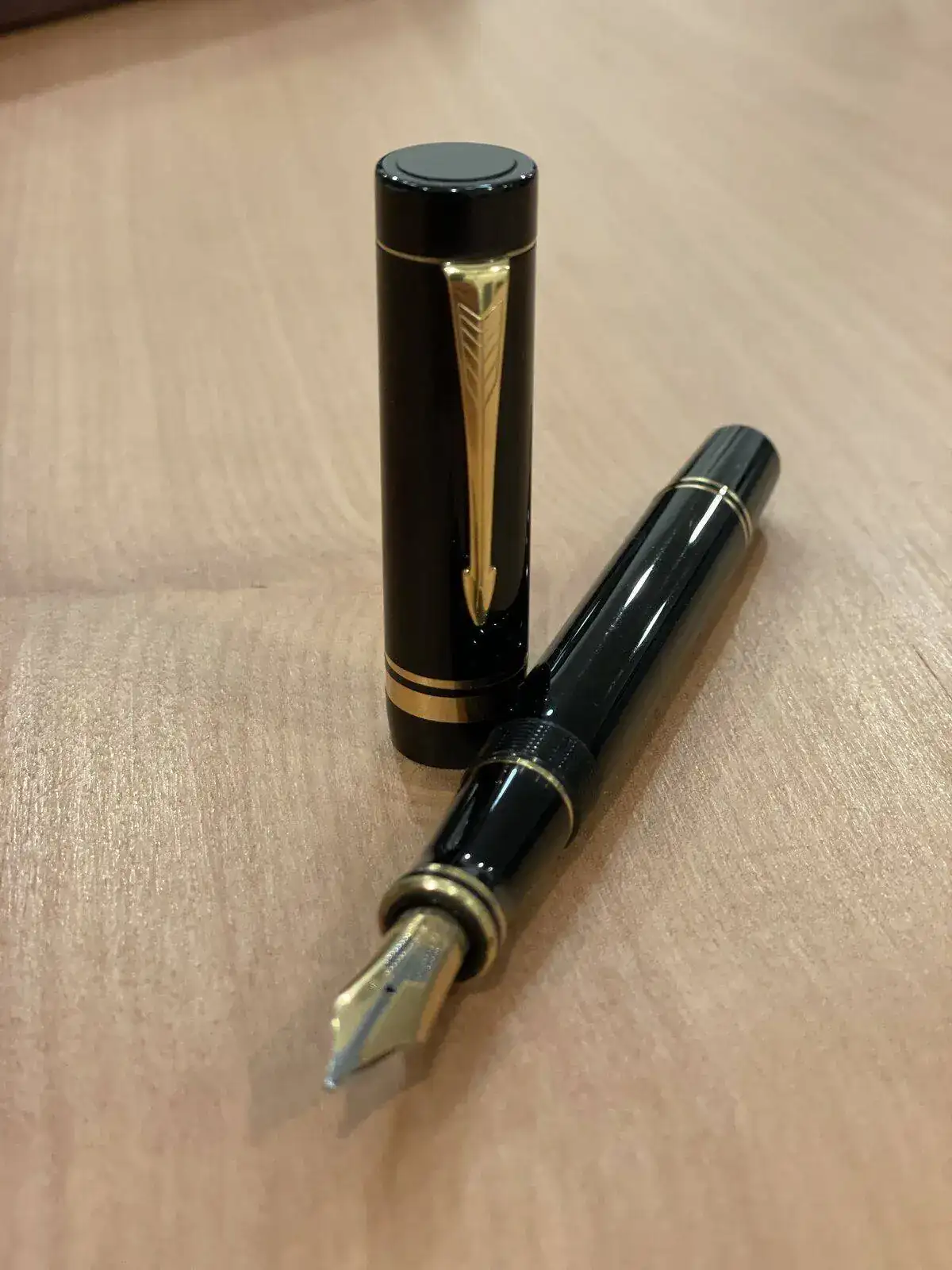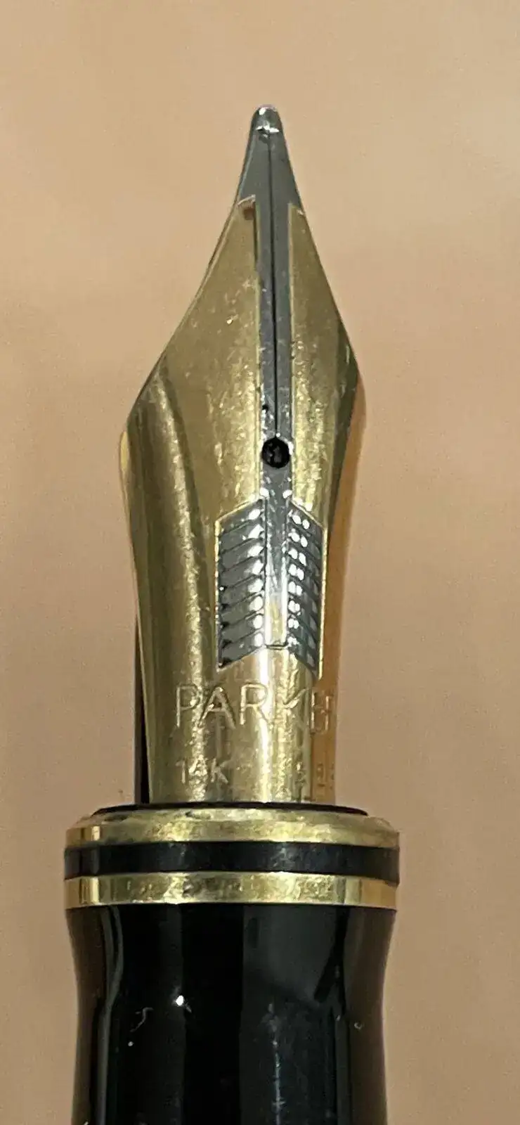 Hola, hace años que no escribía. Espero que estén bien. Como les he comentado, en Concepción, ciudad al sur de Chile; es difícil encontrar estilográficas, pero en una antigua joyería encontré esta Parker Duofold. Creo que es una centenial, de tope plano sin el logo. Tiene grabado atrás del capuchón made in UK y PC; el plumin es de 14k, y tiene el número 41. Según he averiguado podría ser de las primeras de la re edición, quizás de 1987 (eso sería PC), y 41 parece que es trazo “M”. Bueno, sin aburrirlos más les dejo una fotos y espero sus comentarios para saber más de este hermoso ejemplar que me tiene muy feliz.